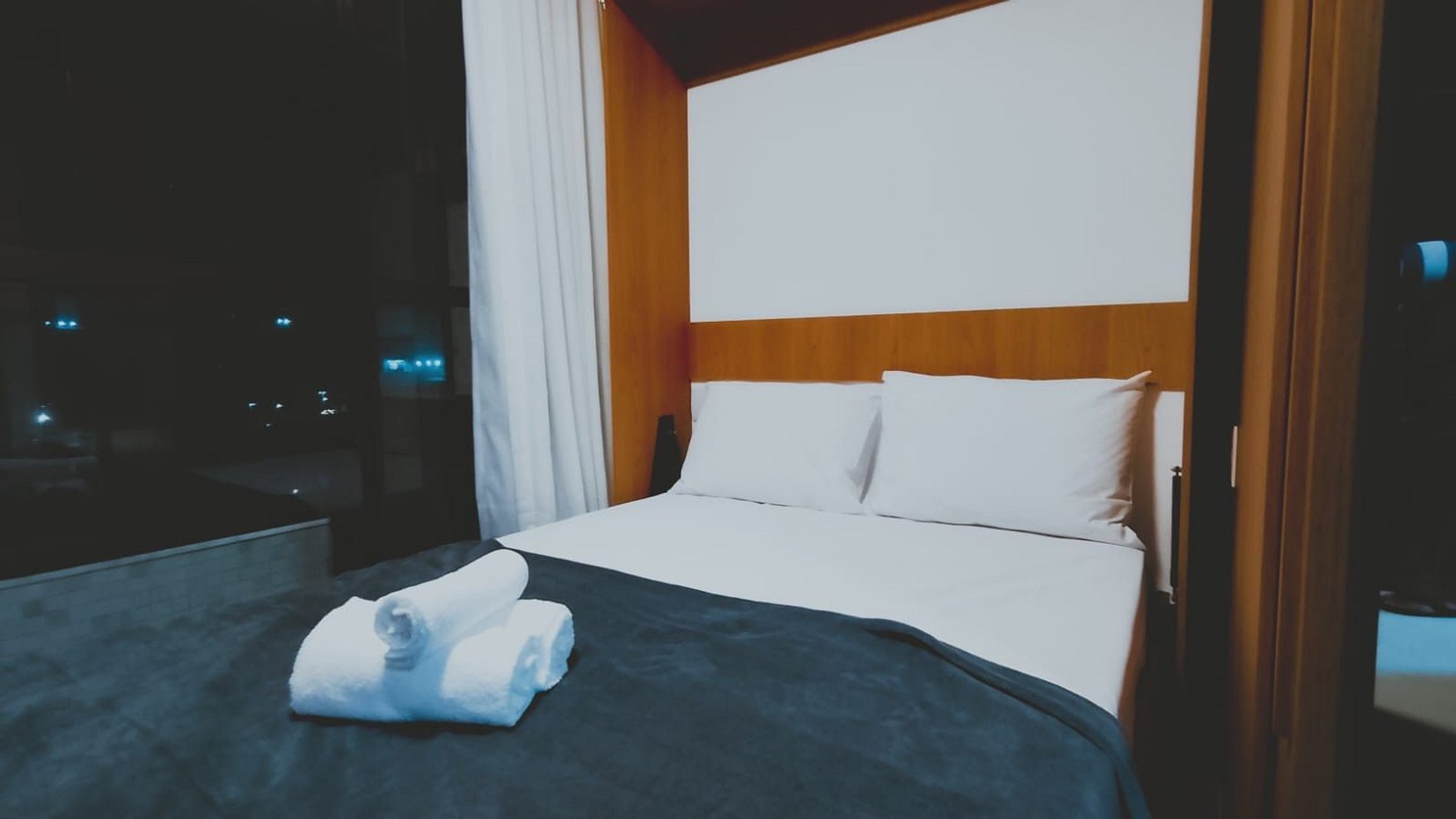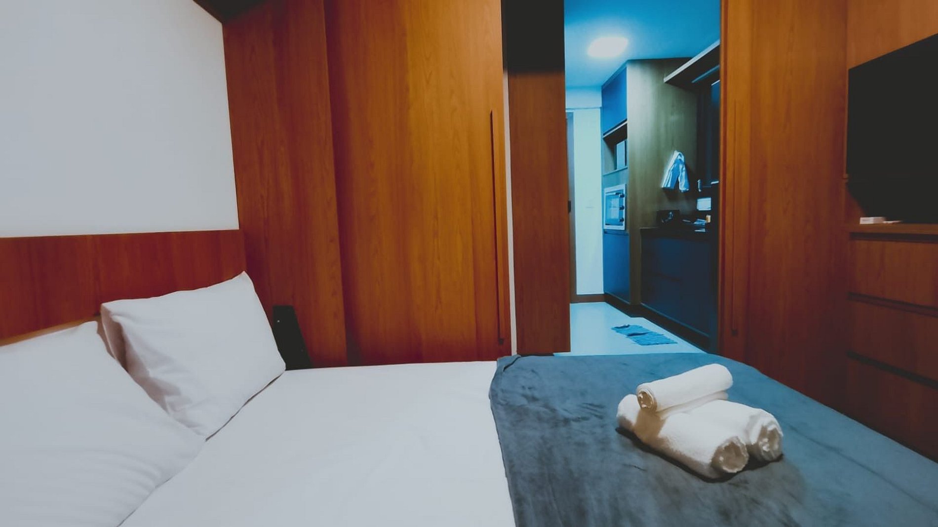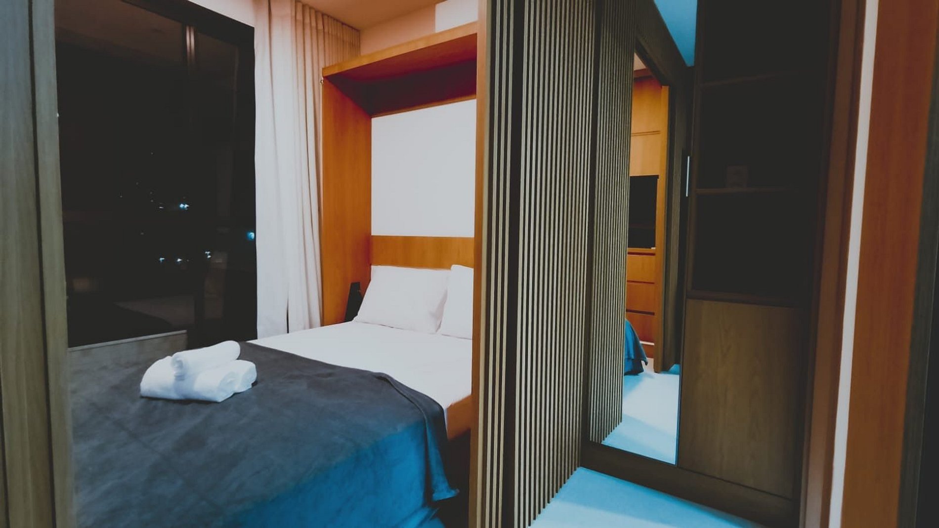 - 1 cama de casal, armário, Smart TV e ar-condicionado;