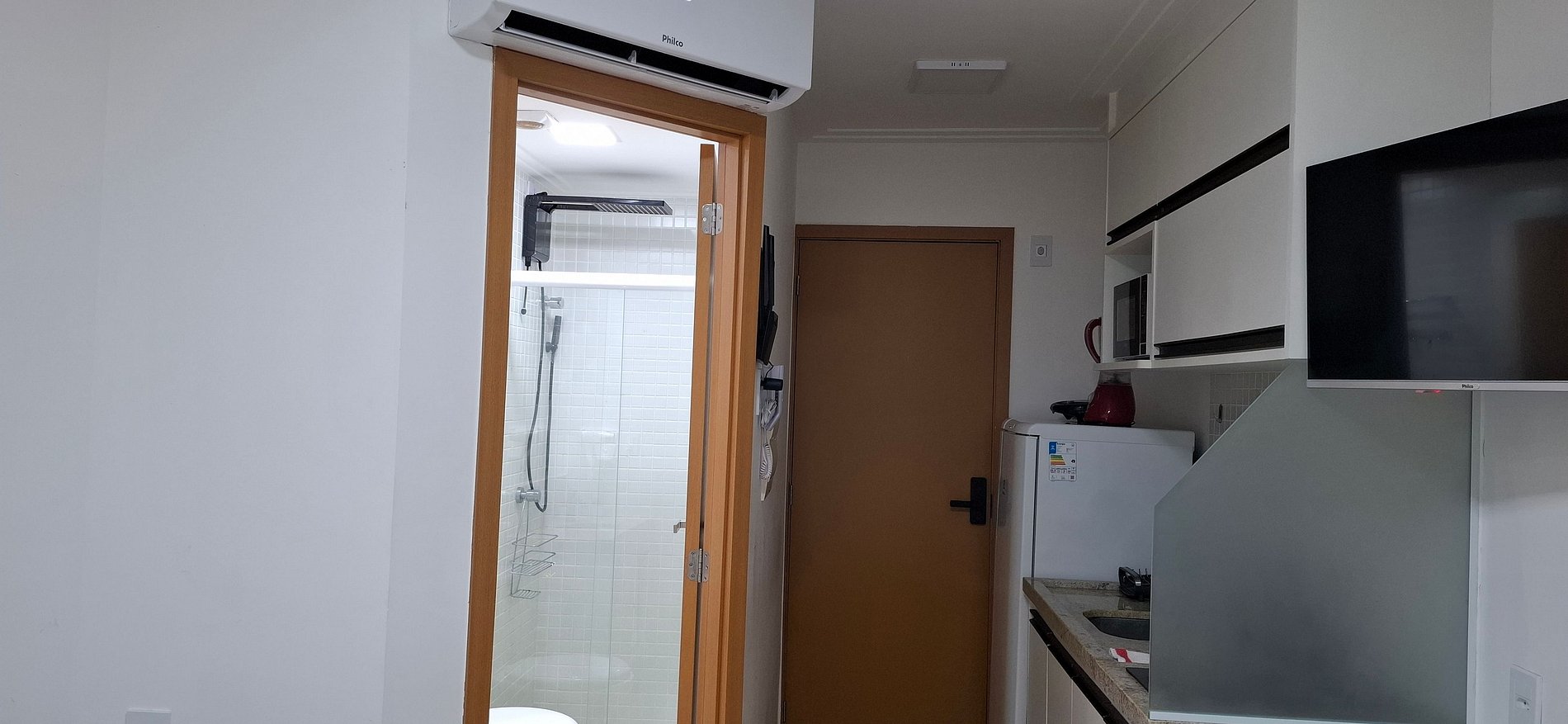 - 1 cama de casal, Smart Tv, armário e ar-condicionado;
