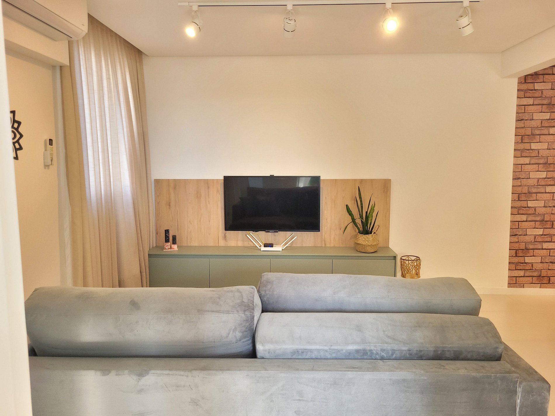 - Sala de estar com sofá-cama de casal, Smart Tv e ar-condicionado;