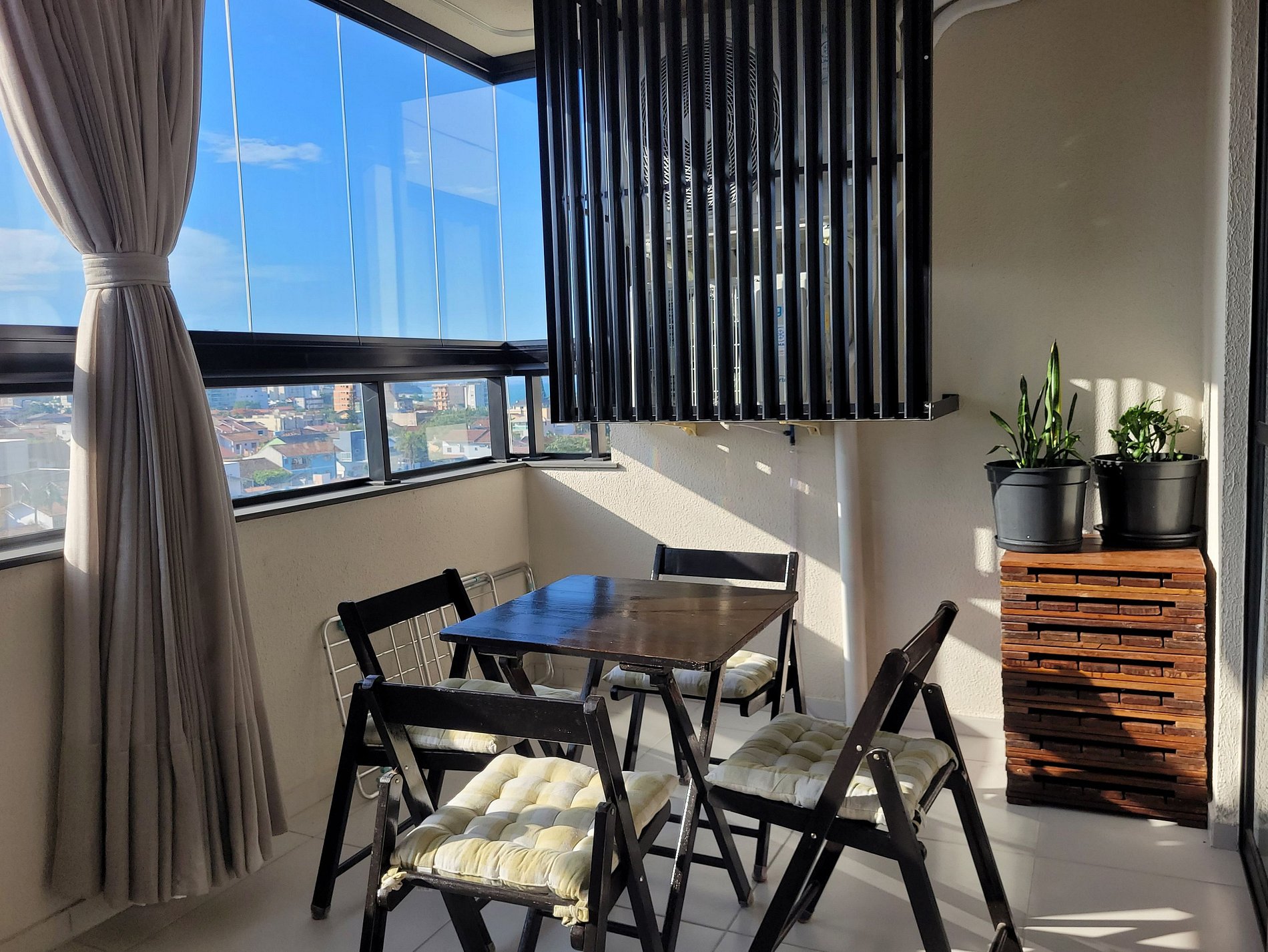 - Varanda agradável com churrasqueira, móveis externos e vista para a cidade e parcial para o mar;
