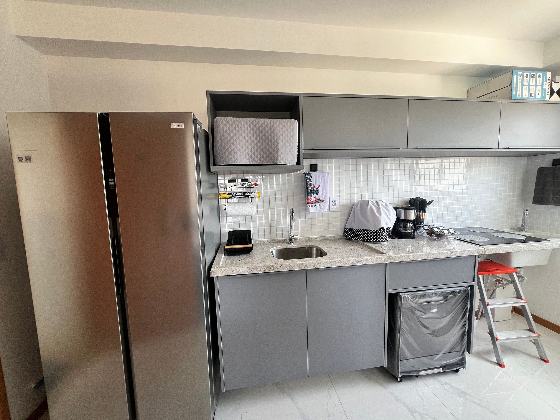 - Cozinha completa com geladeira, fogão cooktop por indução, micro-ondas, Airfryer, sanduicheira, cafeteira elétrica, liquidificador, taças de vinho, panelas, louças e utensílios;