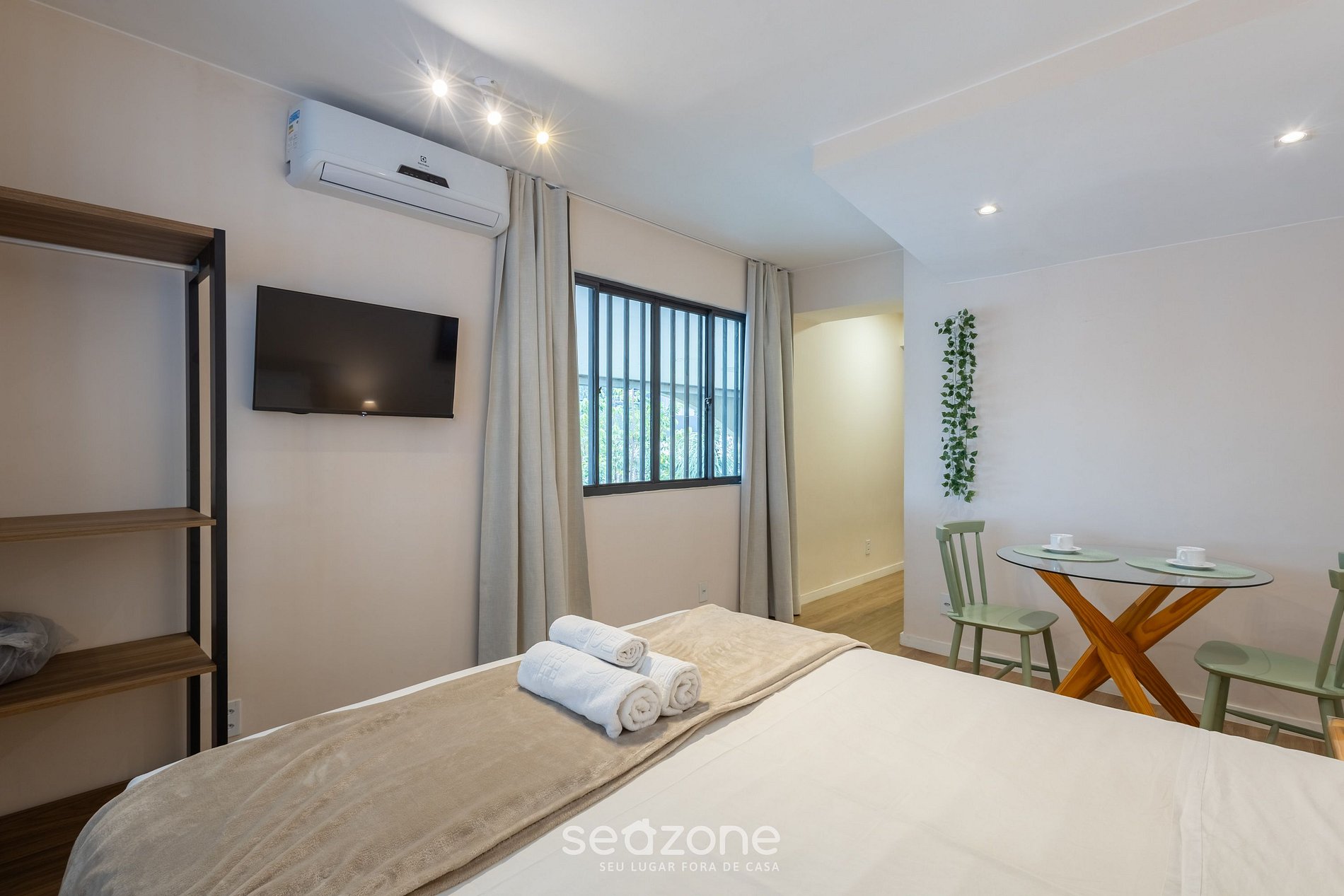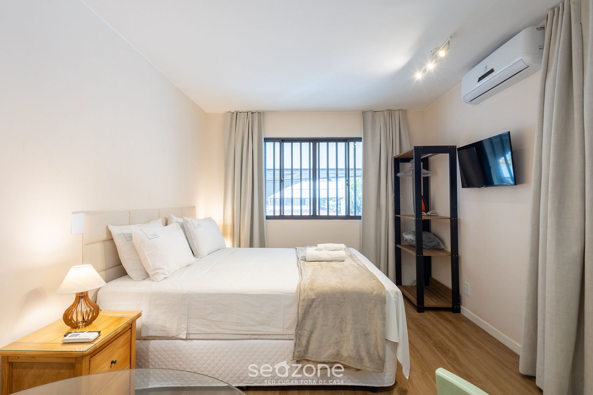 Estúdio sofisticado na Asa Norte: conforto com cama queen e ar-condicionado! Desfrute de um espaço inteligente e acolhedor em uma das regiões mais arborizadas de Brasília. O ambiente conta com Smart TV para você não perder suas séries favoritas e climatização total para o seu bem-estar. A cama queen garante o repouso necessário para quem quer aproveitar o melhor da capital. Garanta sua reserva e experimente uma hospedagem funcional e elegante!