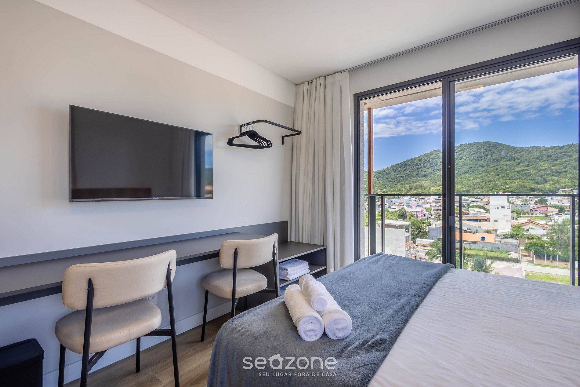 - Roupas de cama e banho de qualidade hoteleira (roupas de cama e toalhas extras são cobrados pela Seazone);