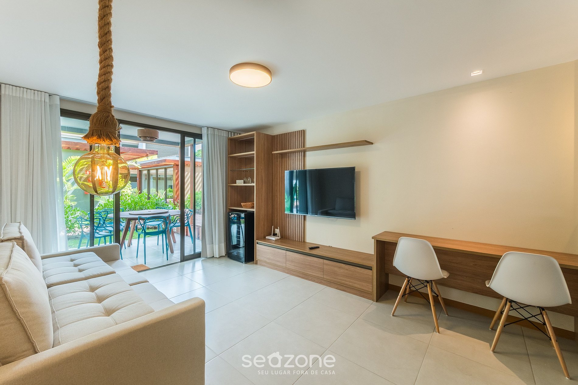 - Sala de estar com Sofá e Smart TV;