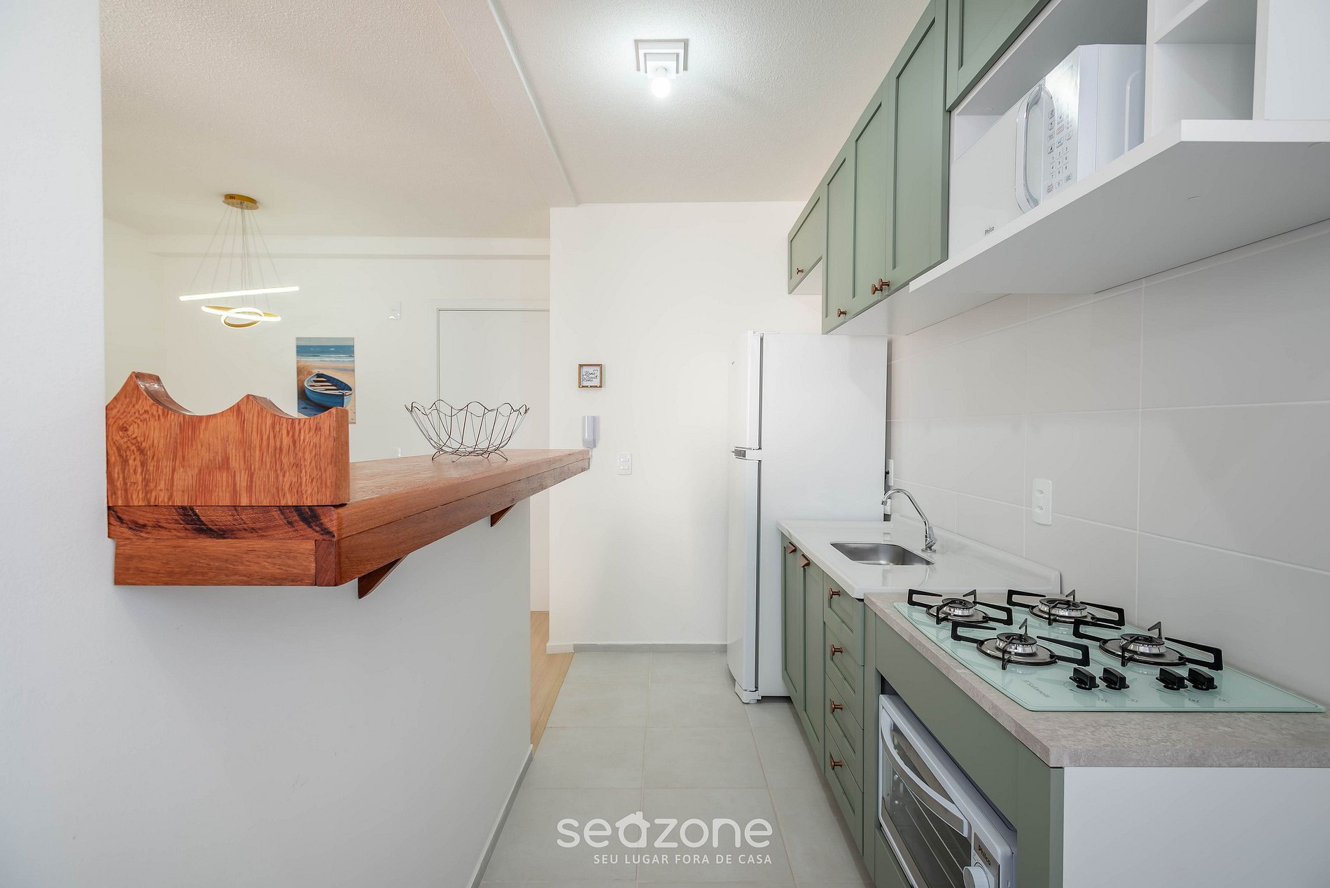 - Cozinha completa com geladeira, fogão cooktop (gás), forno elétrico, micro-ondas, sanduicheira, cafeteira elétrica, chaleira elétrica, liquidificador, taças de vinho, panelas, louças e utensílios;