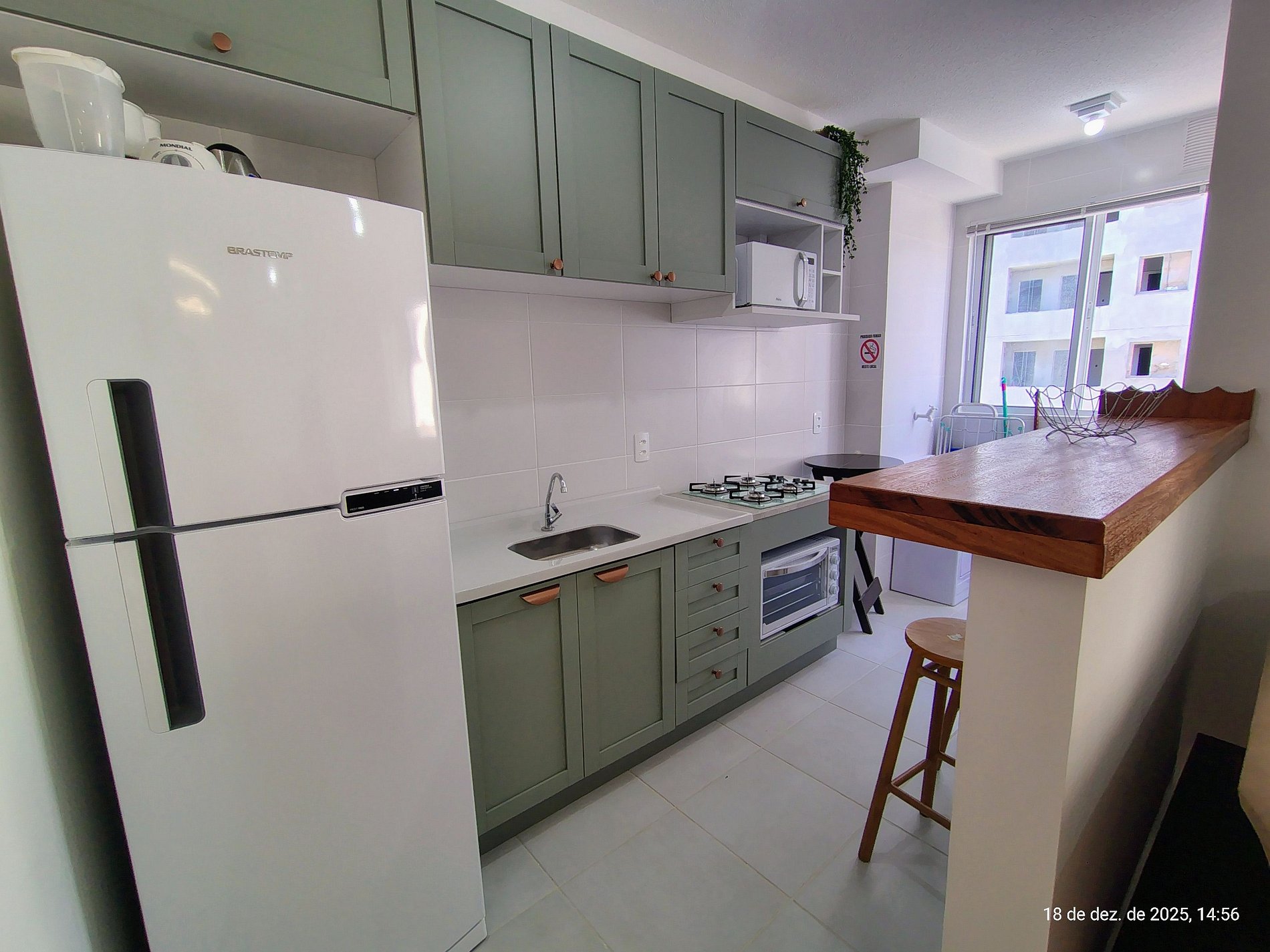 - Cozinha completa com geladeira, fogão cooktop (gás), forno elétrico, micro-ondas, sanduicheira, cafeteira elétrica, chaleira elétrica, liquidificador, taças de vinho, panelas, louças e utensílios;