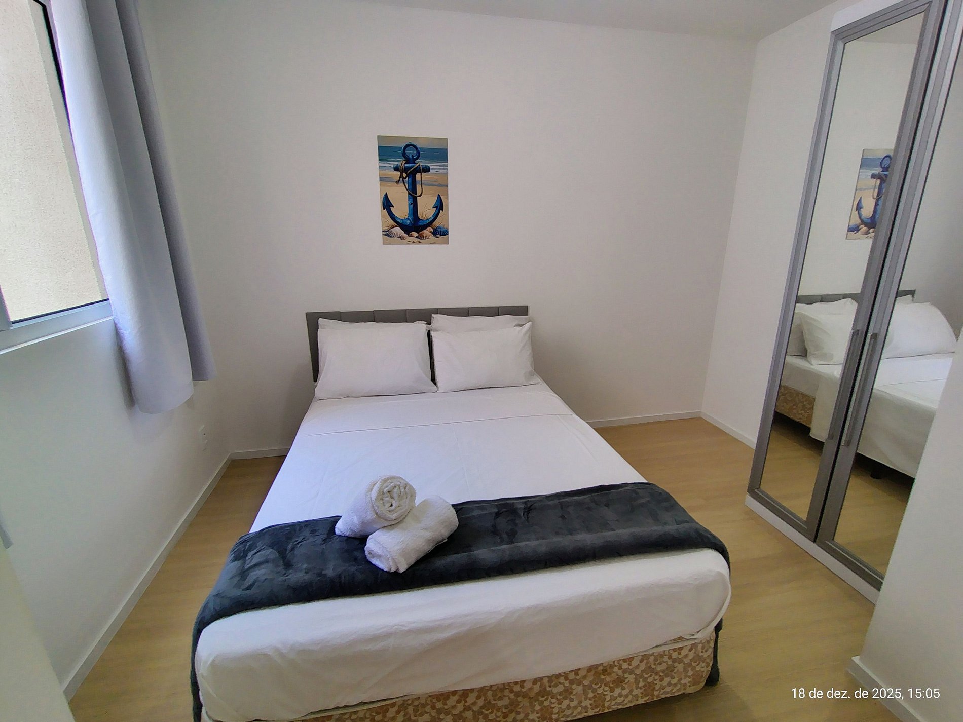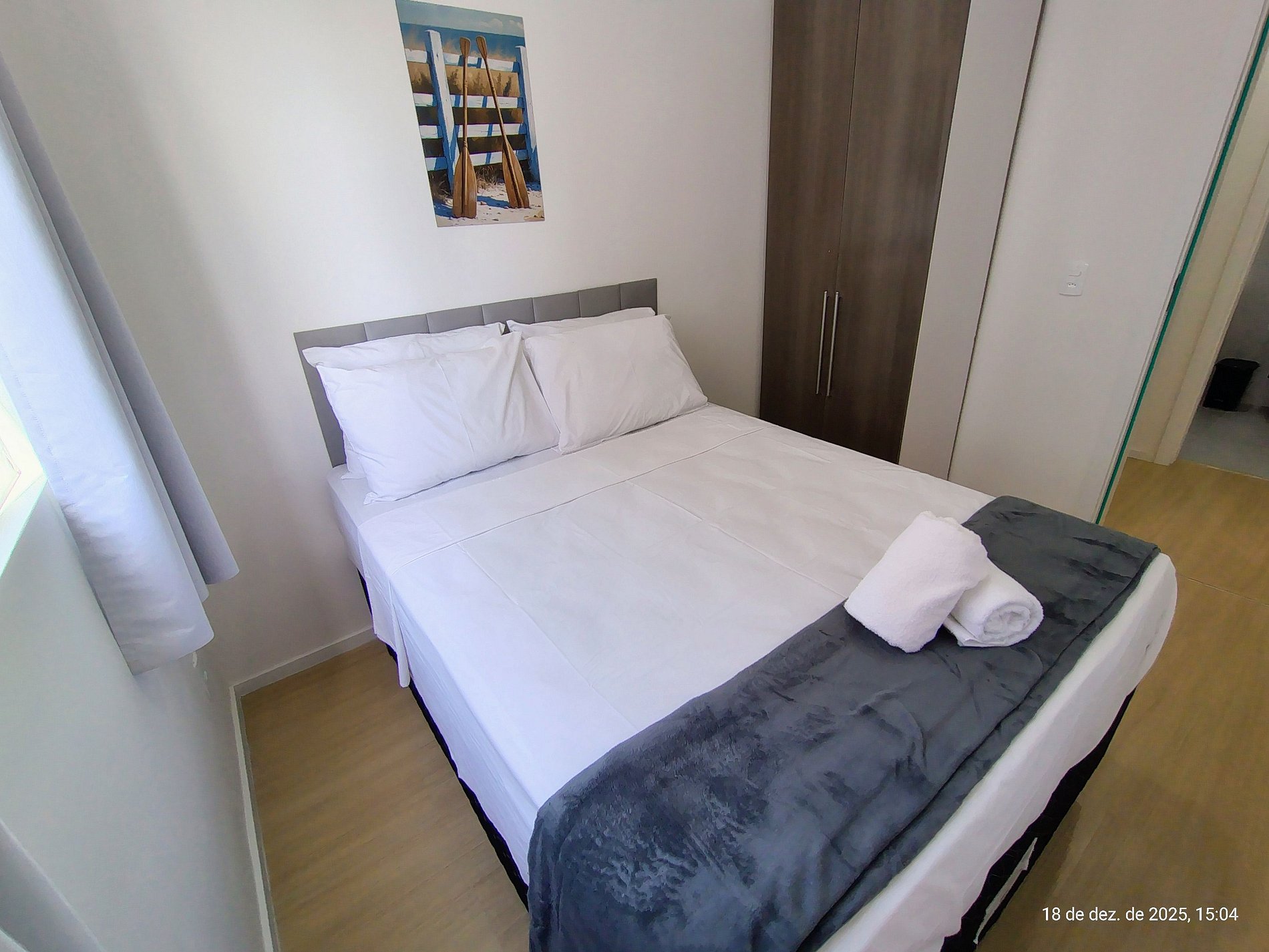 - 1 Quarto com cama de casal, armário e ar-condicionado;