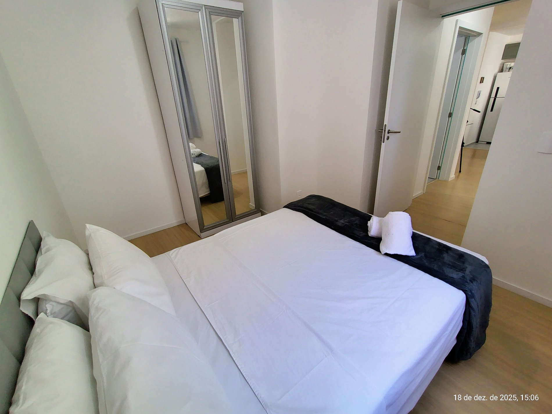 - 1 Quarto com cama de casal, armário e ventilador portátil