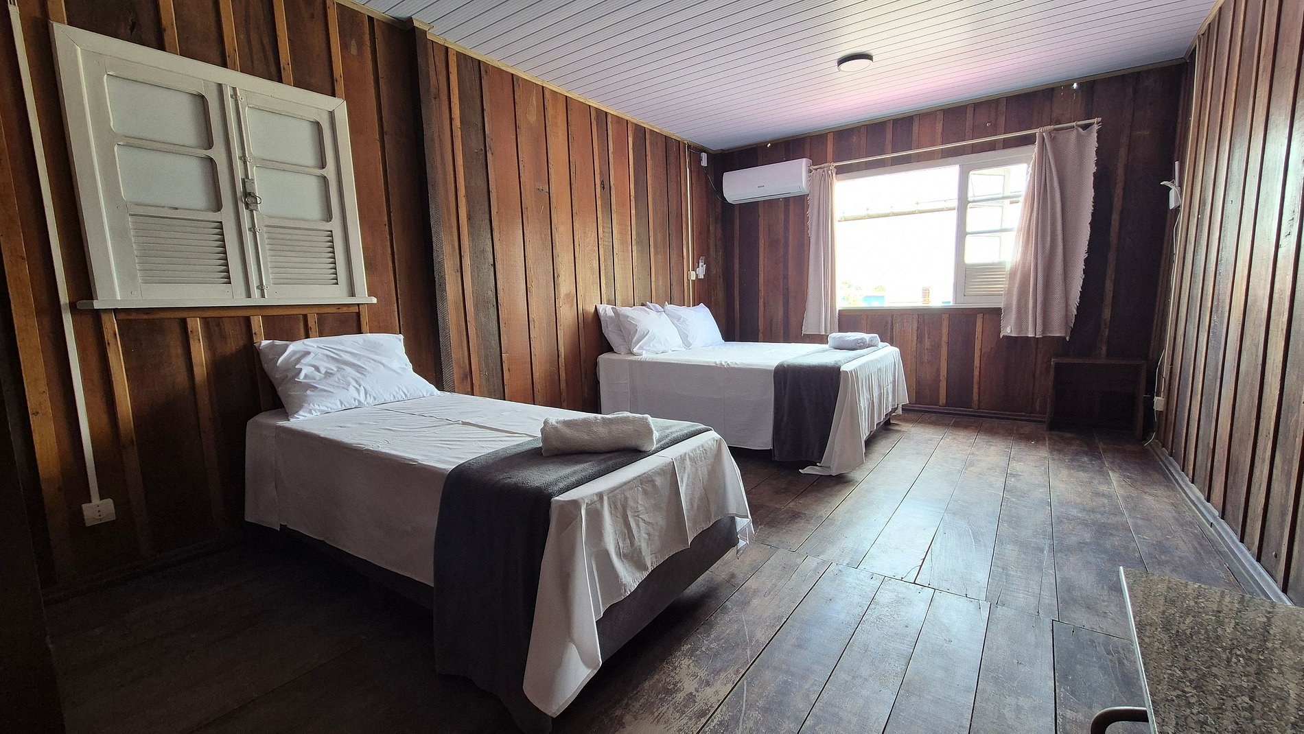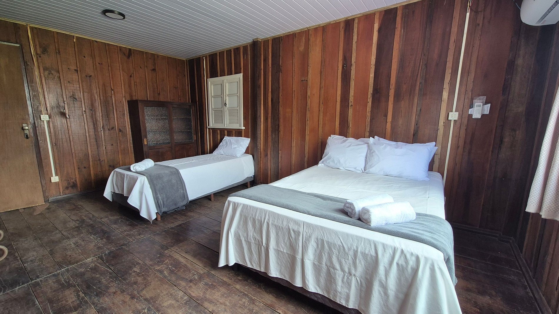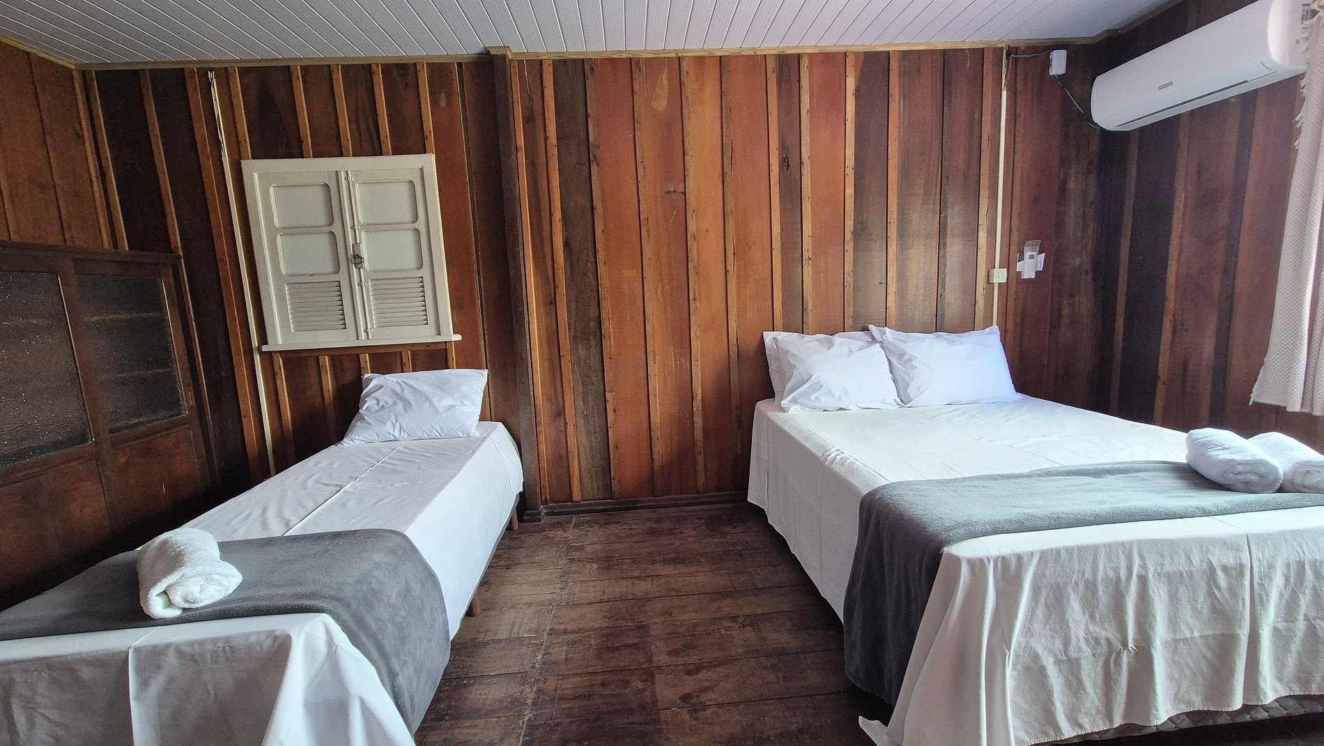- 1 Quarto com cama casal, cama solteiro e ar-condicionado;