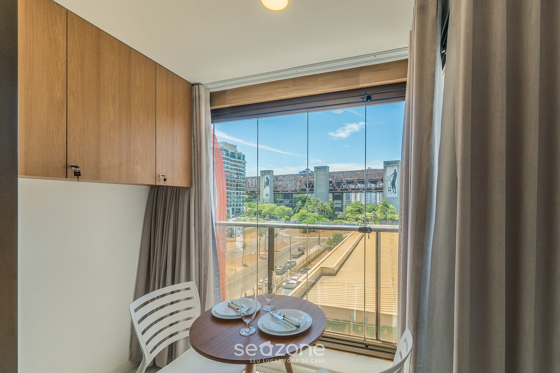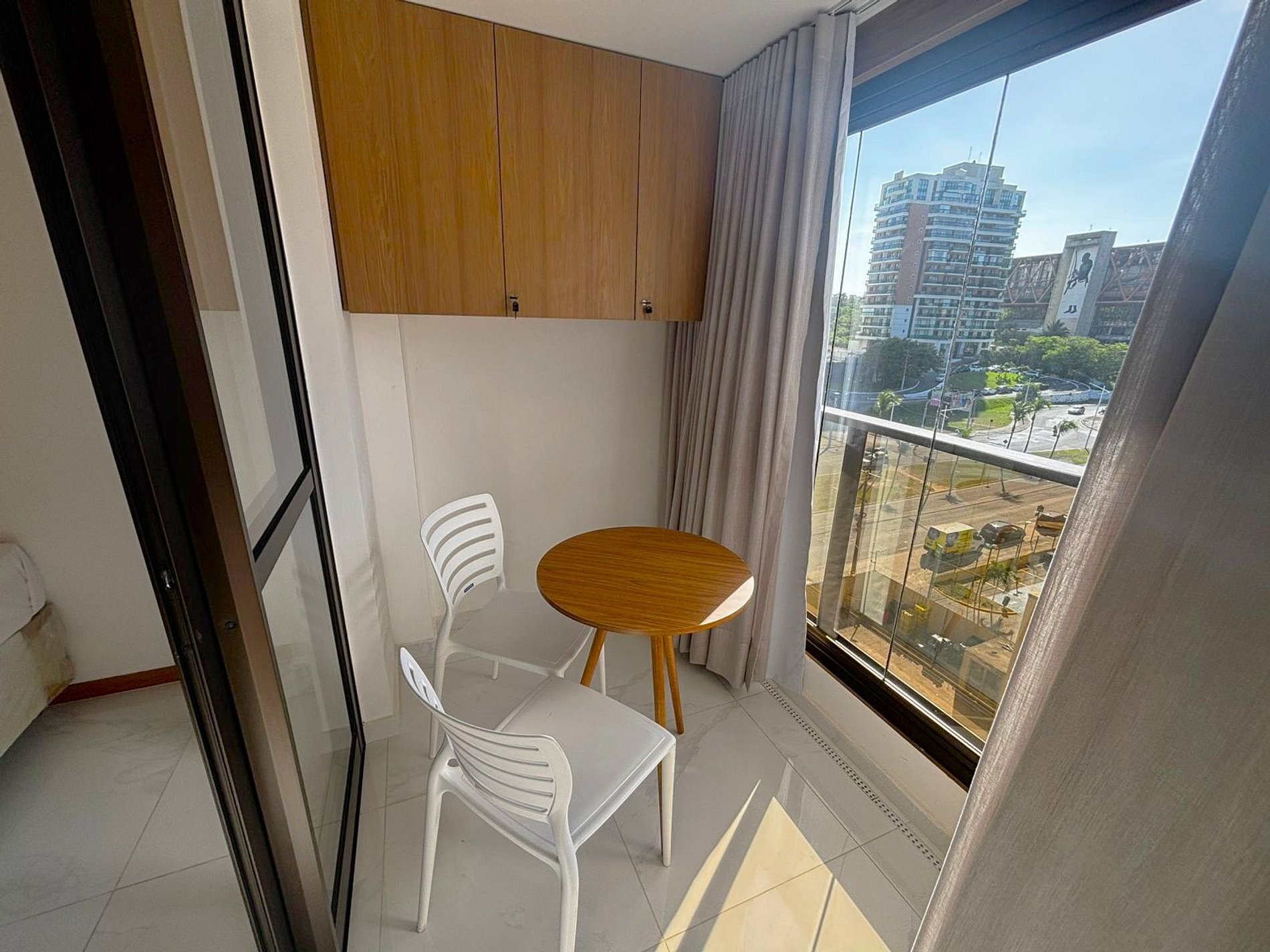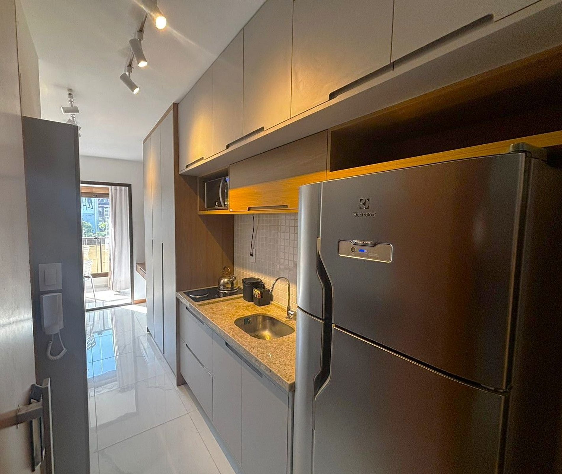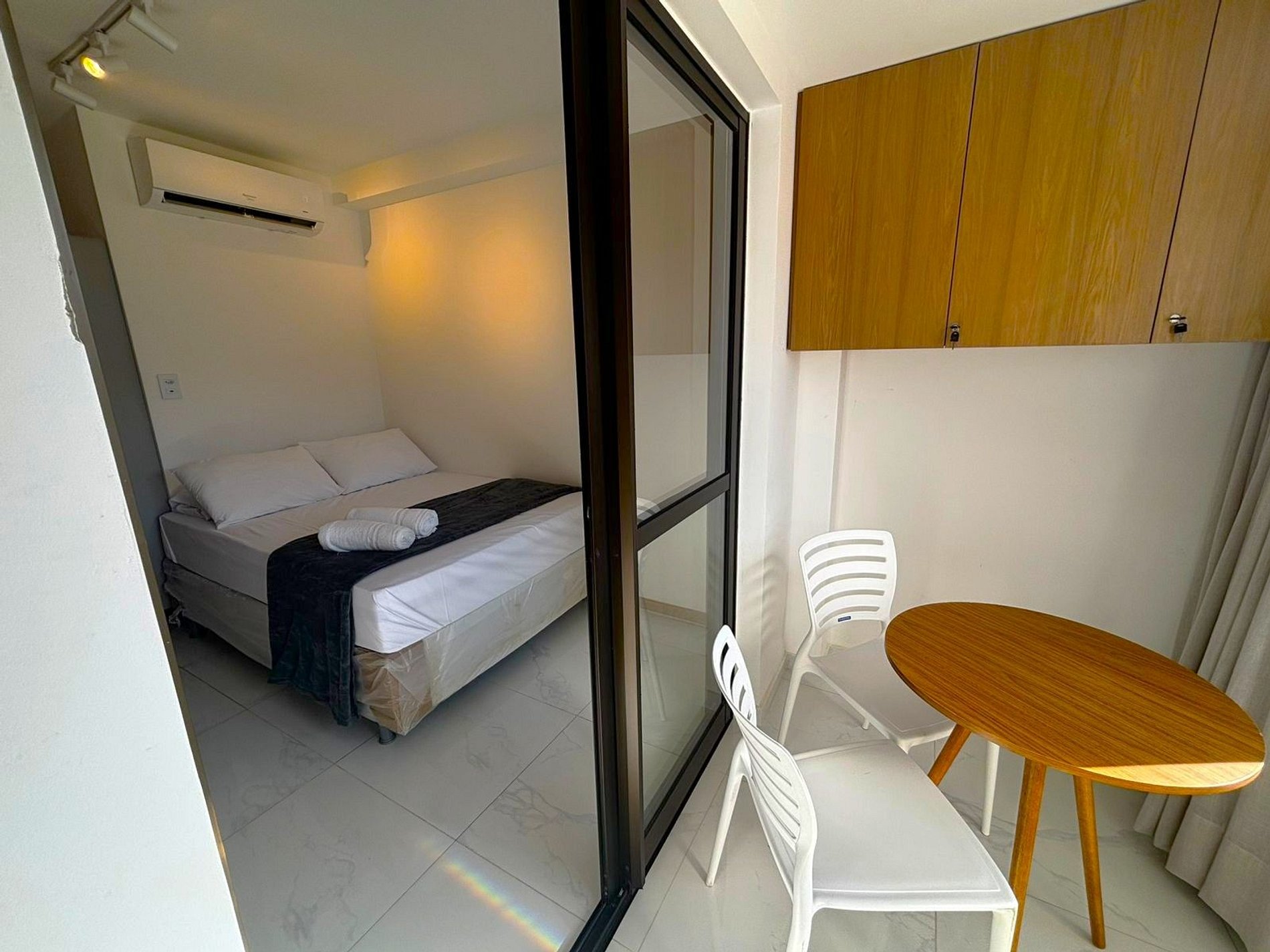 Studio contemporâneo com layout inteligente, cama de casal, Smart TV, ar-condicionado, armário planejado e cozinha completa. A varanda integrada cria um espaço agradável para refeições com vista urbana. O condomínio oferece piscina na cobertura com vista para o mar, academia e coworking. Localização estratégica, a poucos minutos da orla e com fácil acesso a mercados, restaurantes e vias principais.