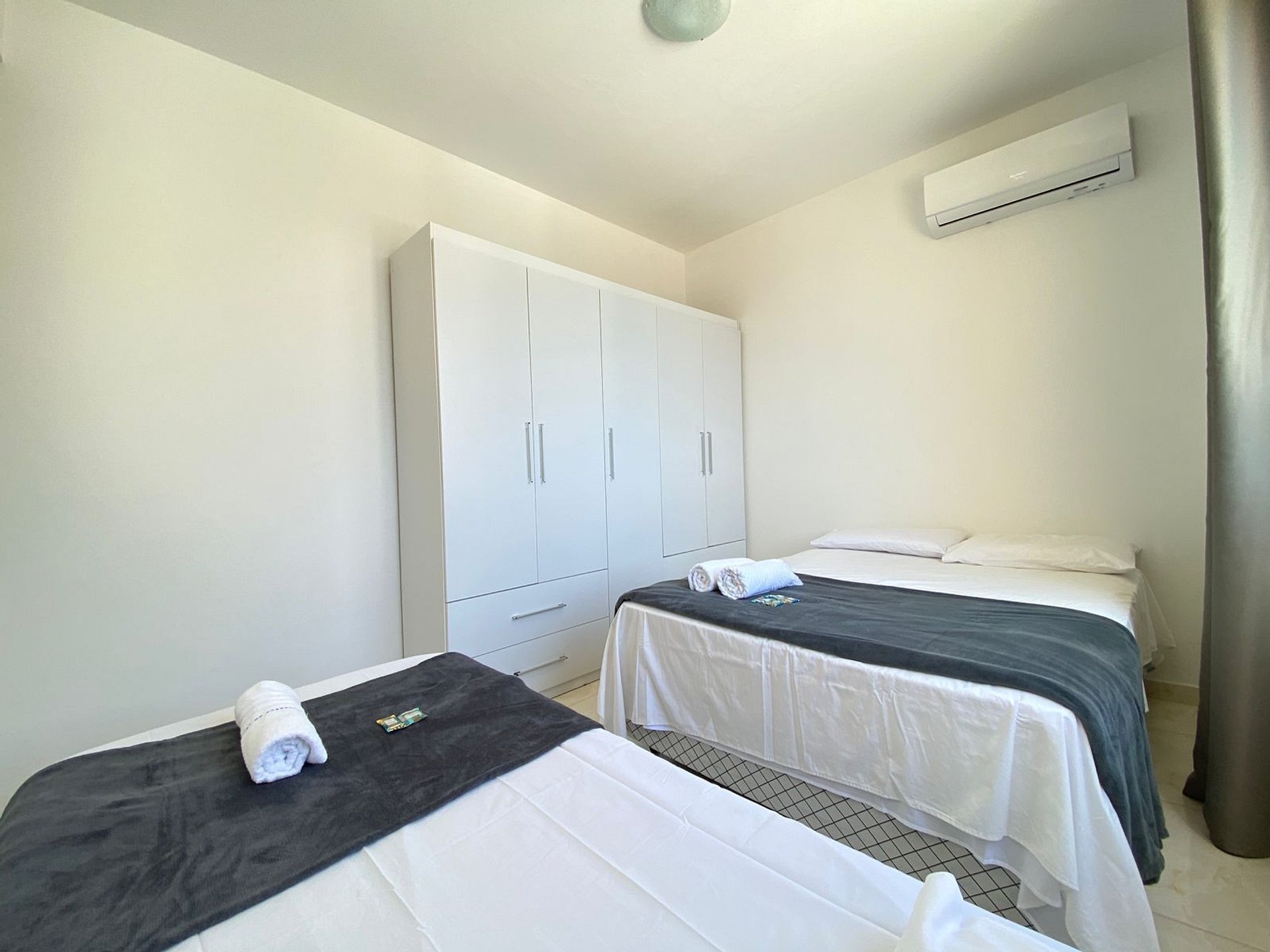 - 1 Quarto com cama de casal, cama de solteiro, armário e ar-condicionado;