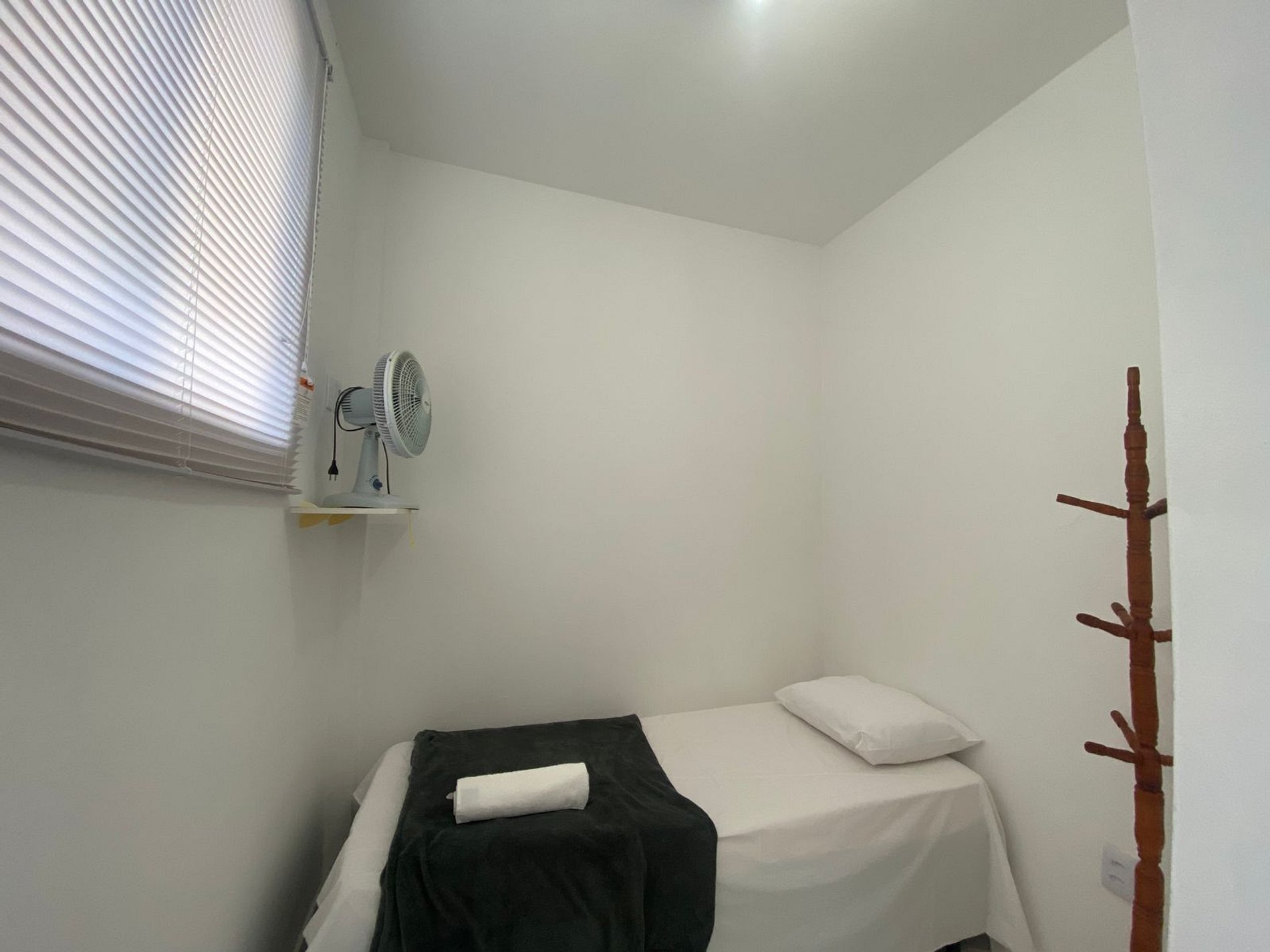 - 1 Quarto com cama de solteiro, ventilador de teto e armário;