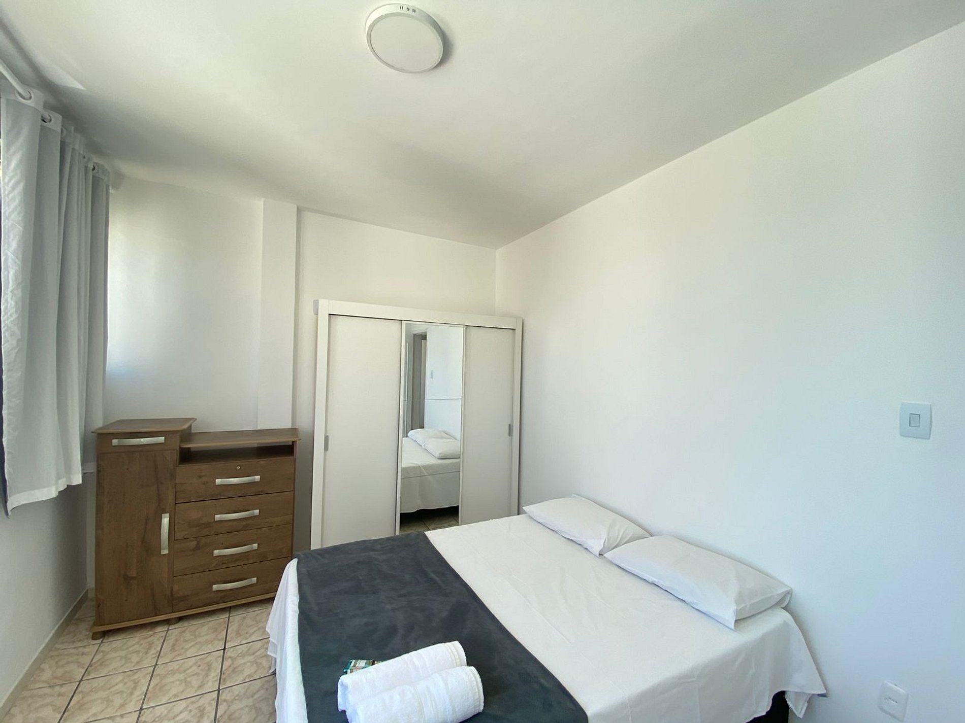 - 1 Quarto com cama de casal, armário e ar-condicionado;