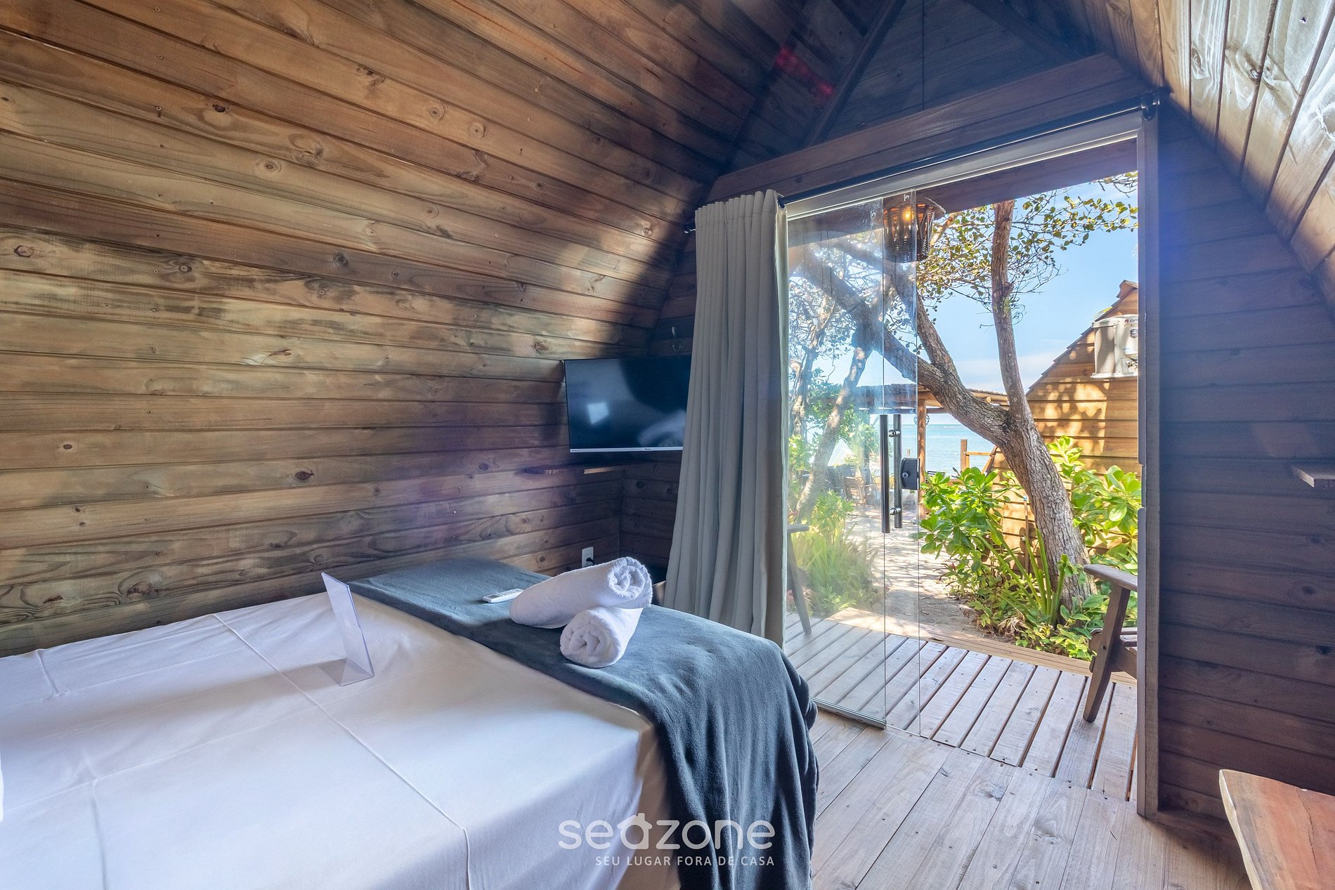 - Roupas de cama/banho e limpeza extras são solicitadas e pagas à parte, direto com a Seazone;