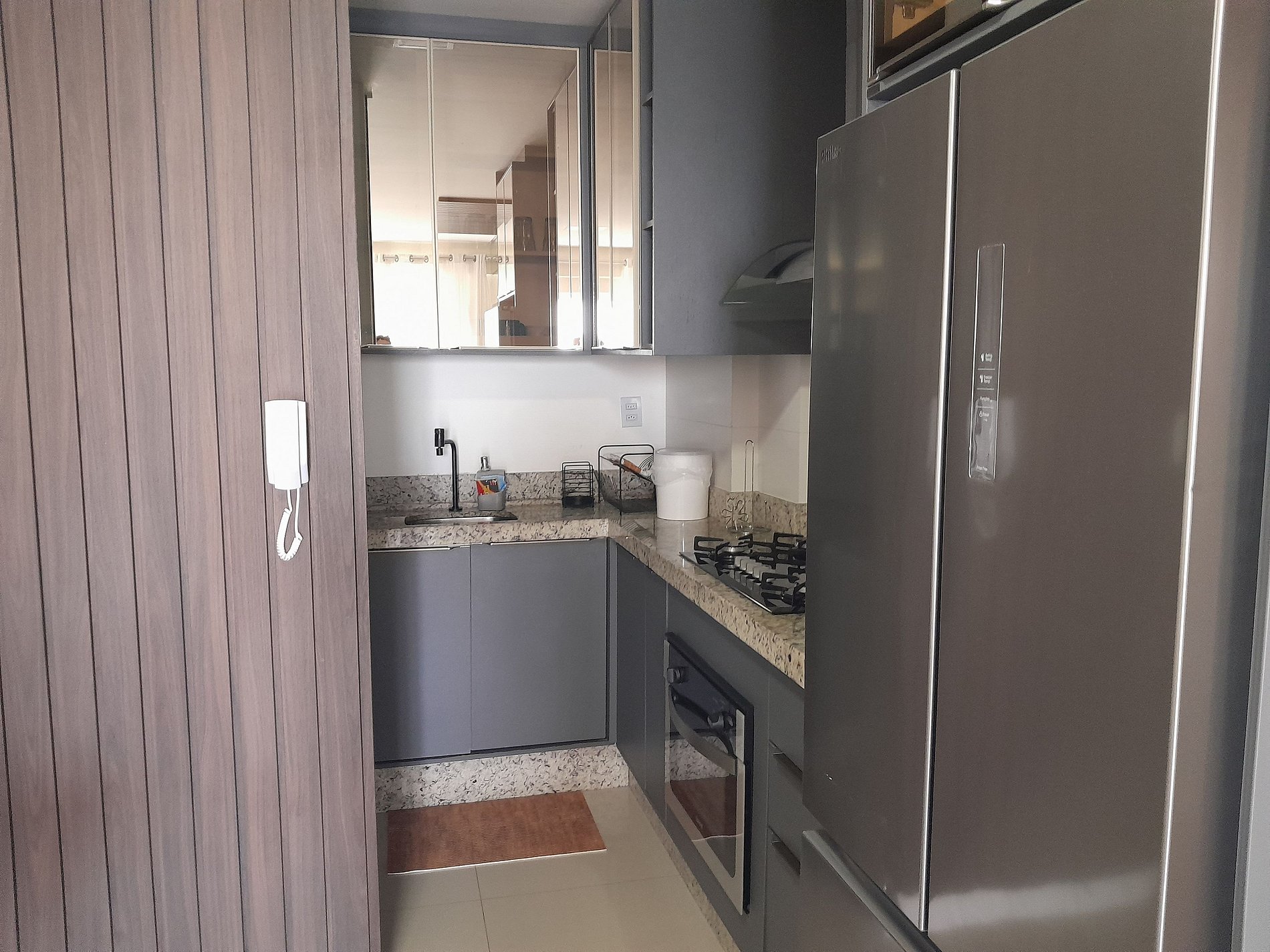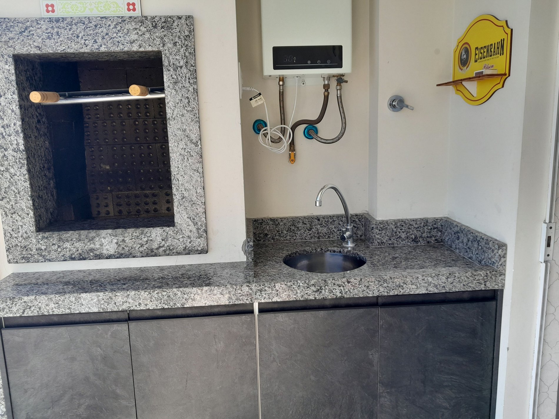 - Cozinha completa com geladeira, fogão cooktop (gás), forno elétrico, micro-ondas, sanduicheira, cafeteira elétrica, chaleira elétrica, liquidificador, taças de vinho, panelas, louças e utensílios;