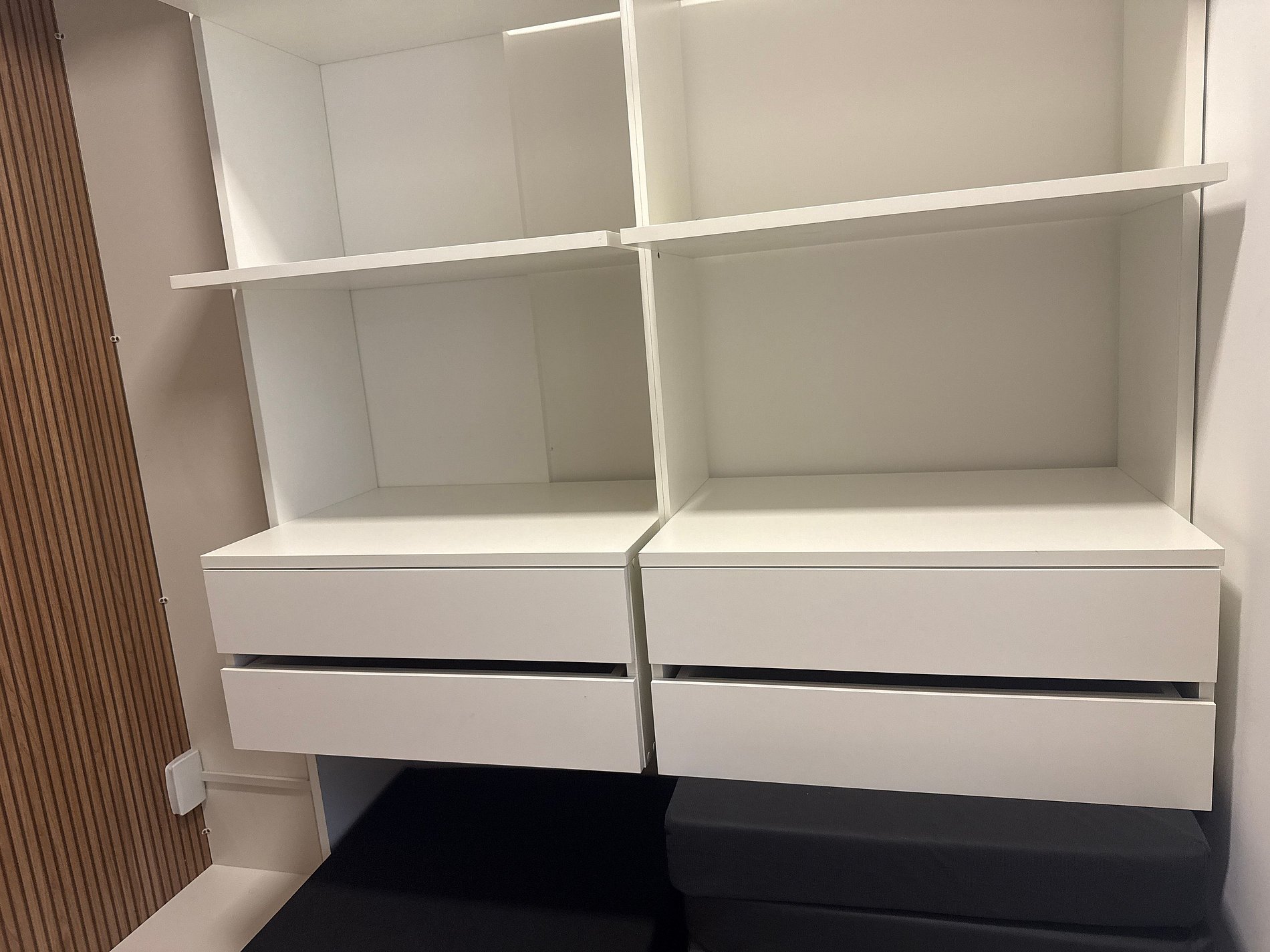 - 1 Suíte com cama de casal, cama auxiliar de solteiro, bicama de solteiro (1 pessoa), armário e ar-condicionado;