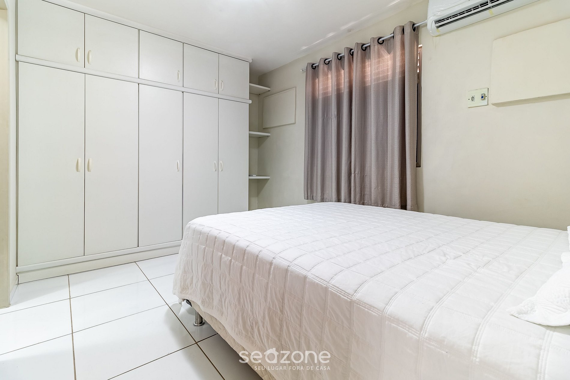 - 1 Suíte com cama de casal queen size, guarda-roupa e ar-condicionado;