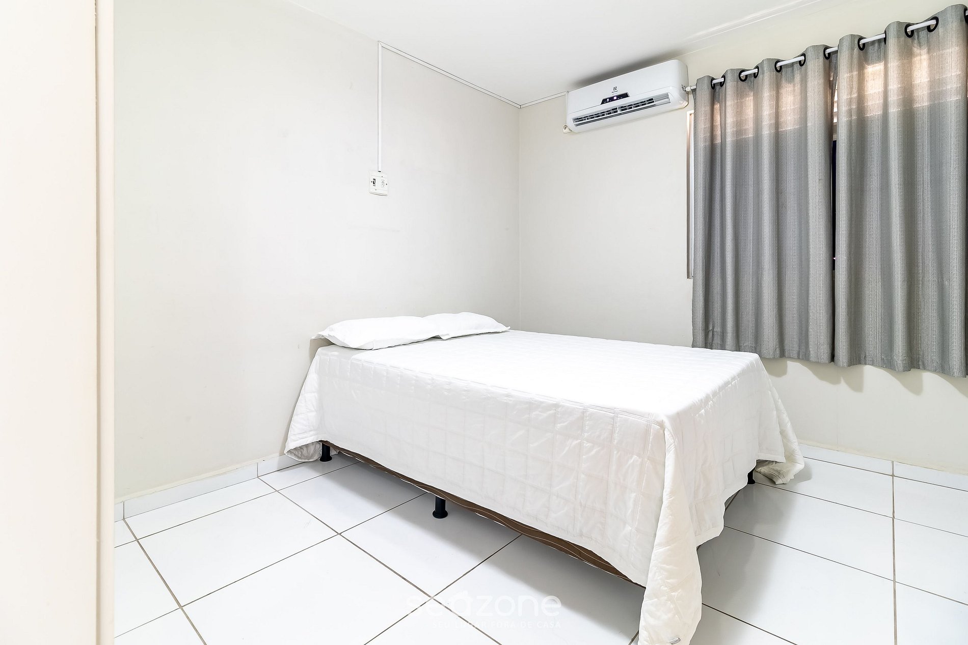 - 1 Quarto com cama de casal, guarda-roupa e ar-condicionado;