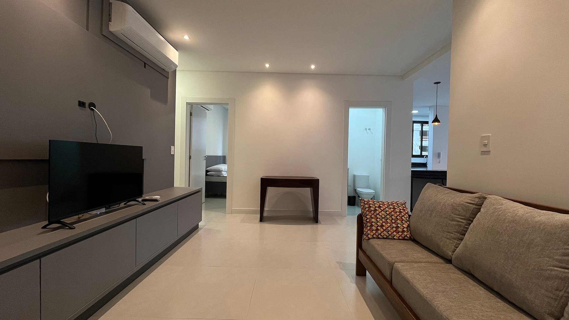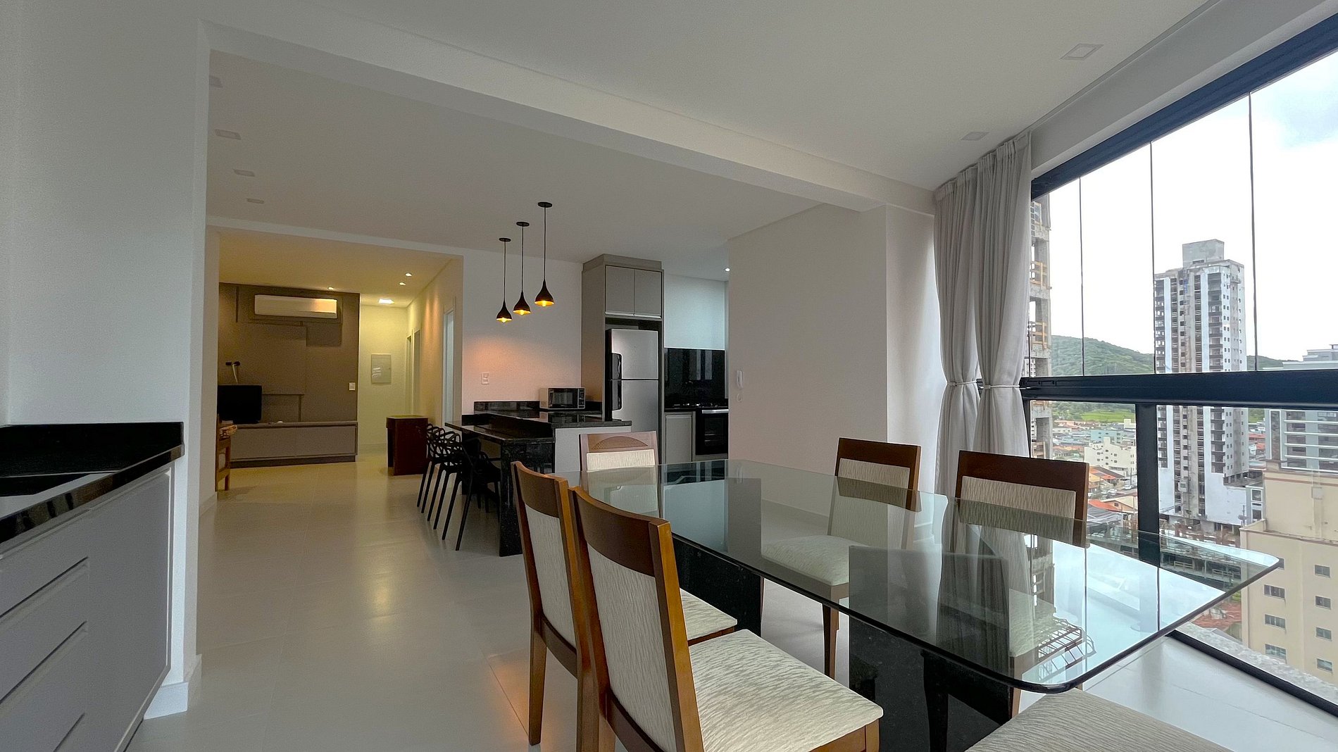 Este apto refinado oferece três suítes com ar-condicionado, sala climatizada com sofá e Smart Tv, cozinha equipada e área gourmet com churrasqueira integrada. Localizado a 90m da praia, próximo a cafés, supermercados e excelentes opções gastronômicas, entrega praticidade e uma experiência marcante no litoral.