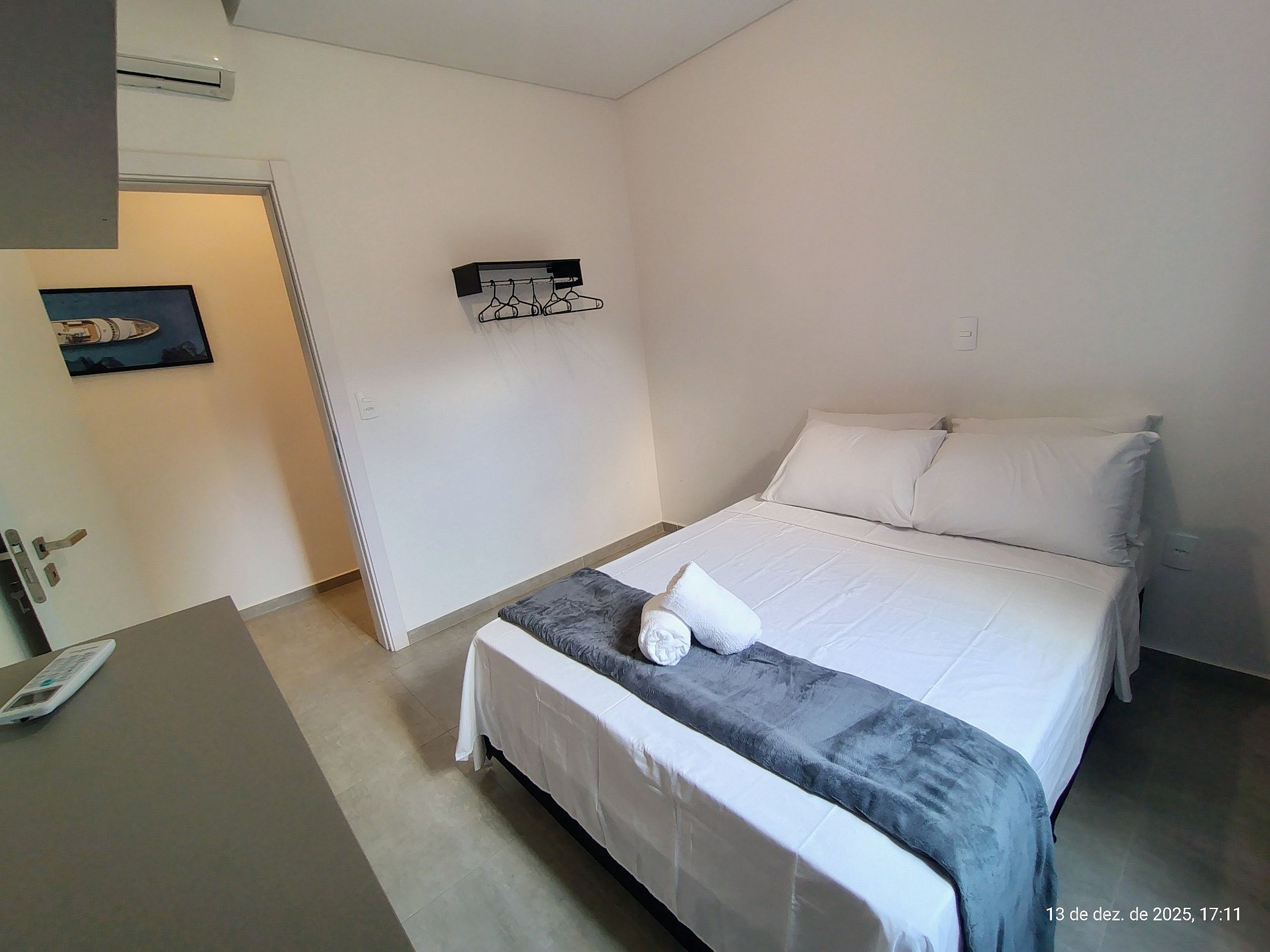 - 1 Quarto com Cama de casal, arara para roupas, armário e ar-condicionado;