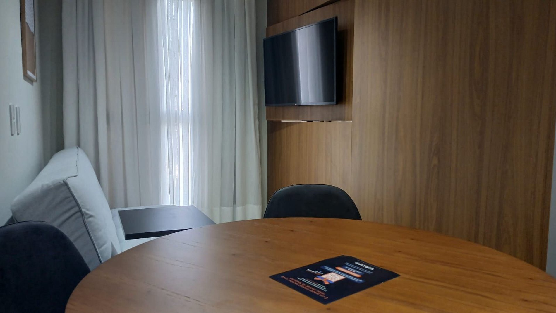 - Cama queen size, sofá-cama, arara para roupas, Smart TV e ar-condicionado;