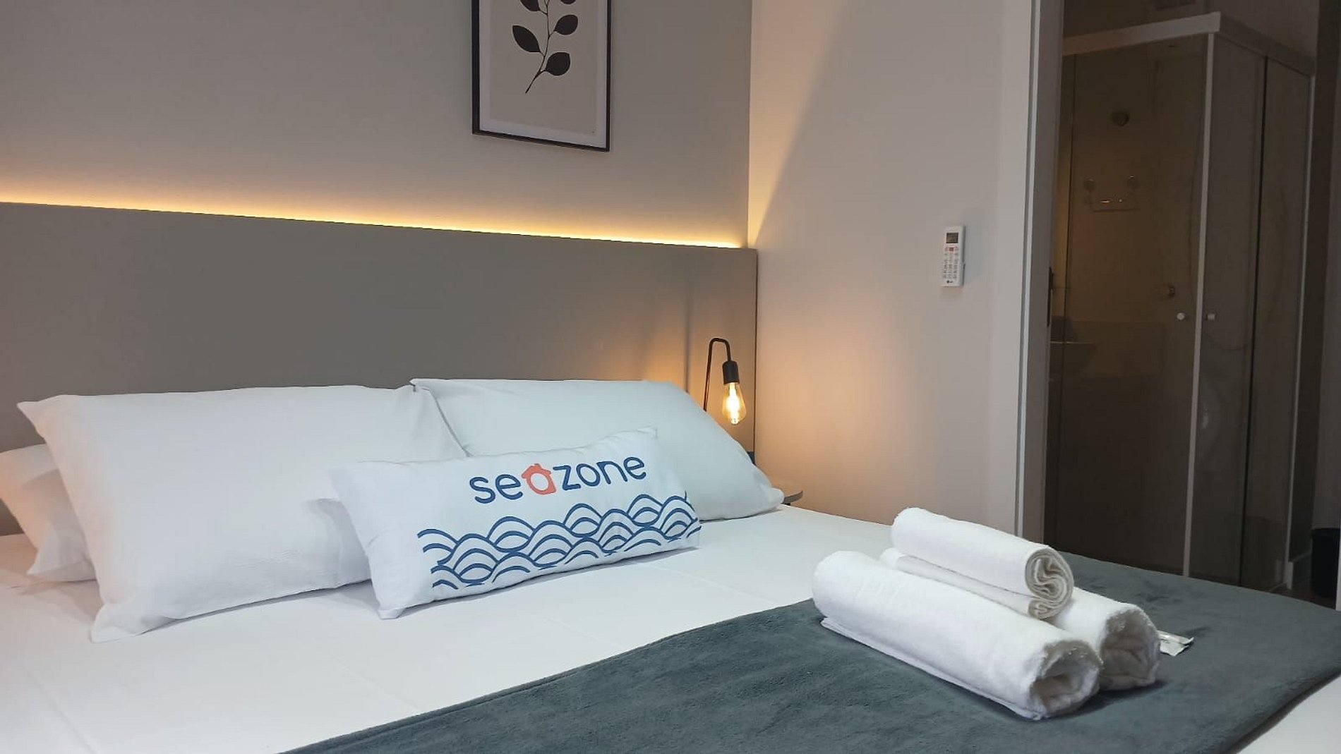 - Roupas de cama/banho e limpeza extras são solicitadas e pagas à parte, direto com a Seazone;
