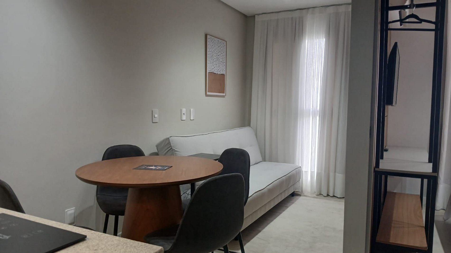 Com design contemporâneo e ambientes bem distribuídos, este studio oferece estadia completa, com cama queen, sofá-cama, ar-condicionado, Smart TV e sacada. A cozinha equipada e a mesa para refeições garantem funcionalidade. O rooftop com piscina de borda infinita eleva a experiência. Fácil acesso às praias do Rosa, Ibiraquera e ao Surfland.