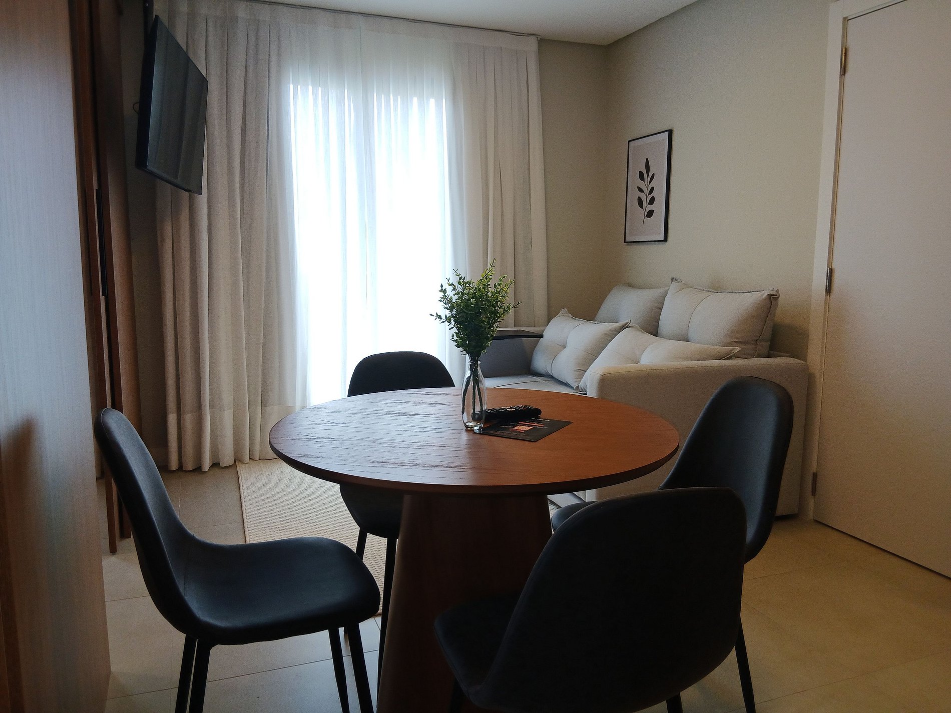 Com ambientes bem distribuídos, este apartamento oferece dois quartos com cama queen e ar-condicionado, sala confortável com sofá-cama e Smart TV, além de cozinha equipada e espaço para refeições. A sacada adiciona leveza ao ambiente. O prédio conta com piscina com borda infinita e área gourmet no rooftop. Fácil acesso às praias do Rosa, Lagoa de Ibiraquera e Surfland.