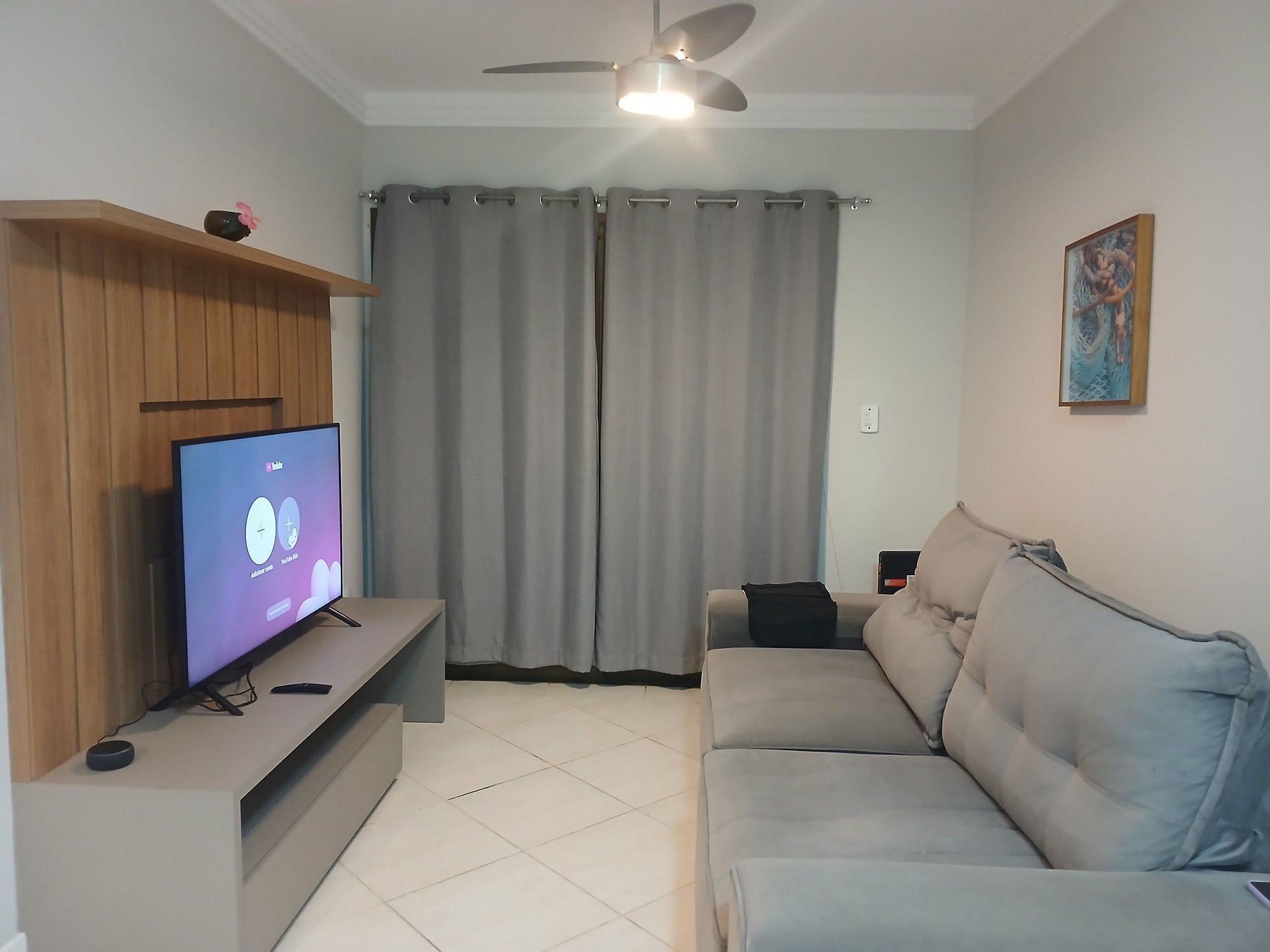 - Sala de estar com Sofá, ventilador de teto e Smart TV;