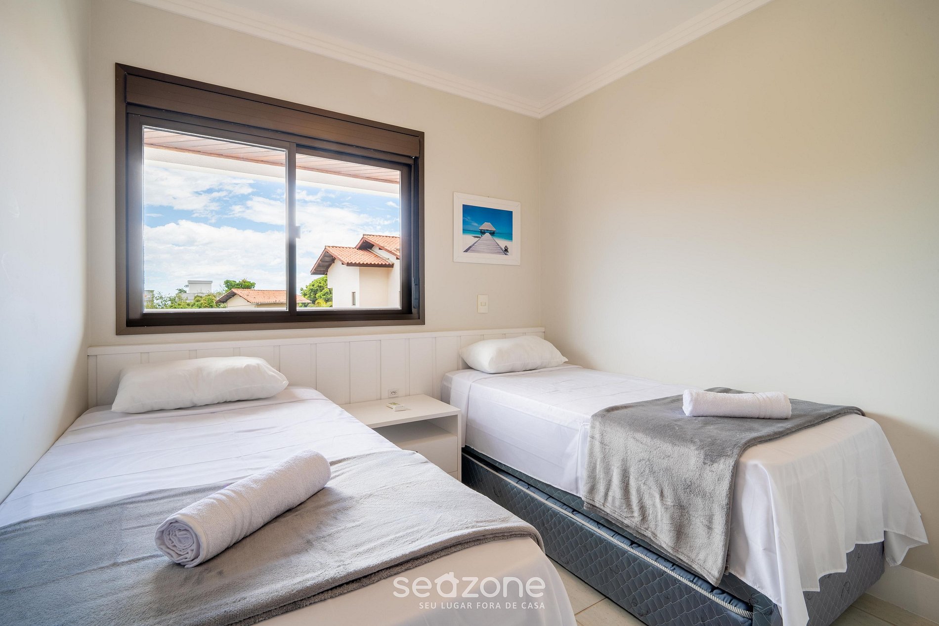 - Roupas de cama/banho e limpeza extras são solicitadas e pagas à parte, direto com a Seazone;