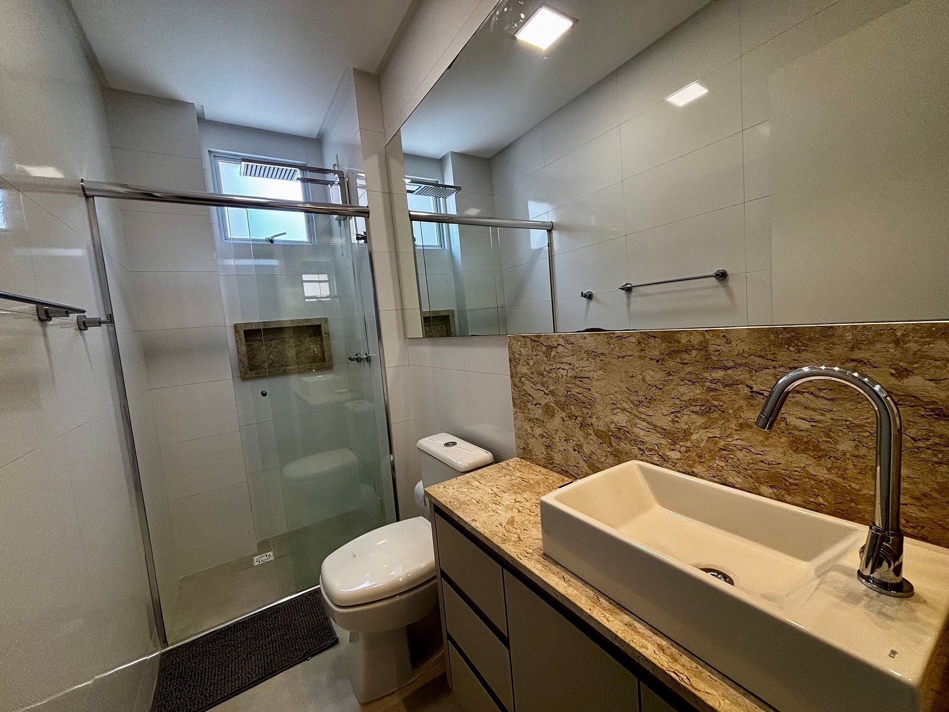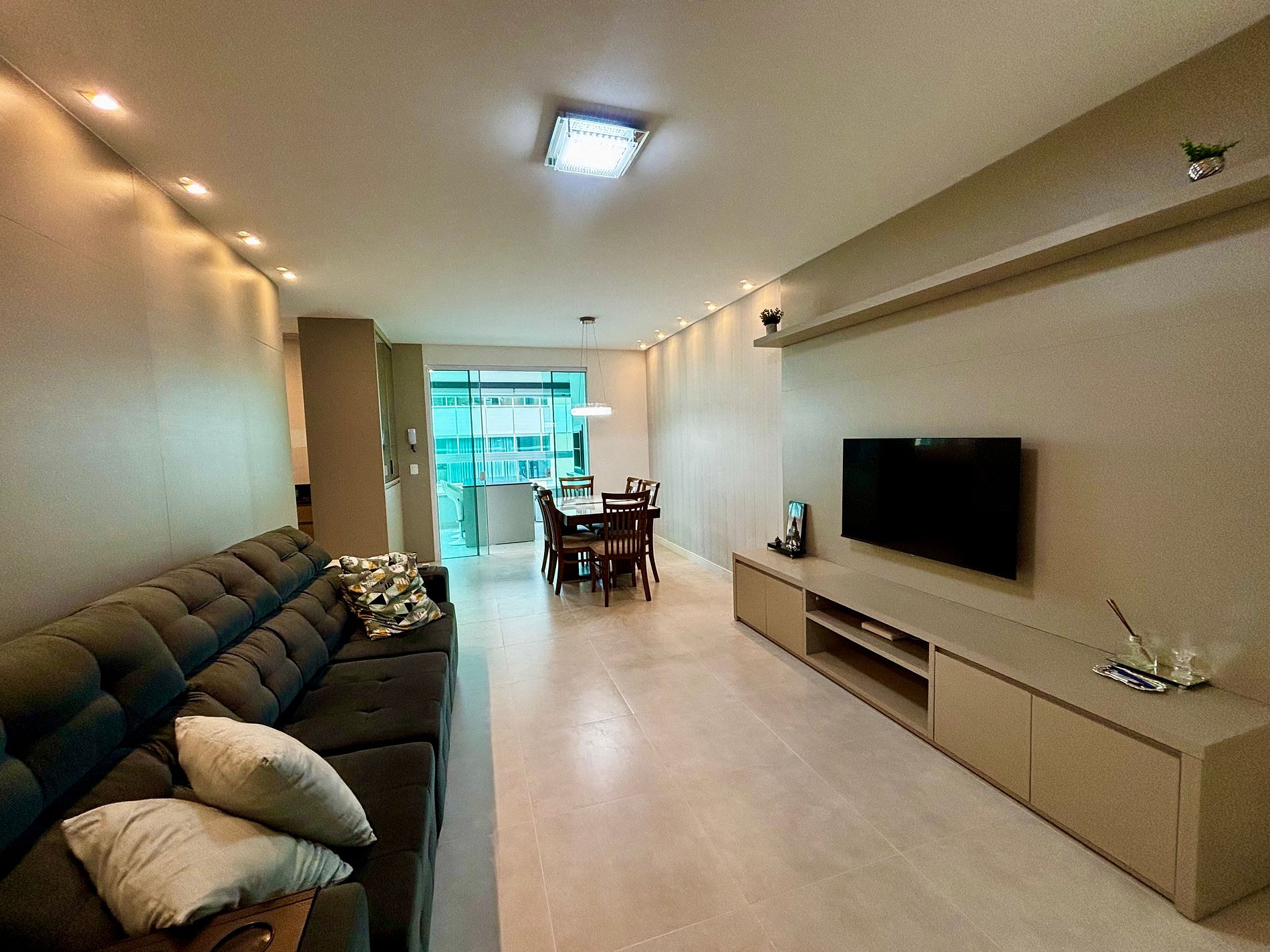Com design moderno e ambientes climatizados, este apto se destaca pela varanda gourmet com churrasqueira e pela estrutura completa: suíte, dois quartos adicionais, sala com sofá e Smart TV, cozinha equipada, espaço de jantar integrado, lava e seca e vaga coberta. Em área valorizada, perto de mercados, cafés, farmácias, ótimos restaurantes e do calçadão revitalizado.