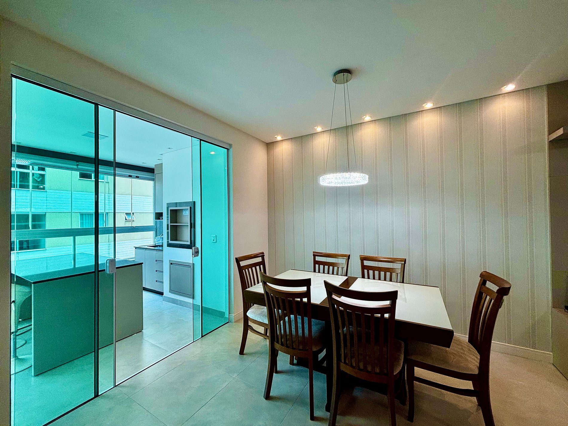 - Espaço para jantar com mesa e cadeiras;