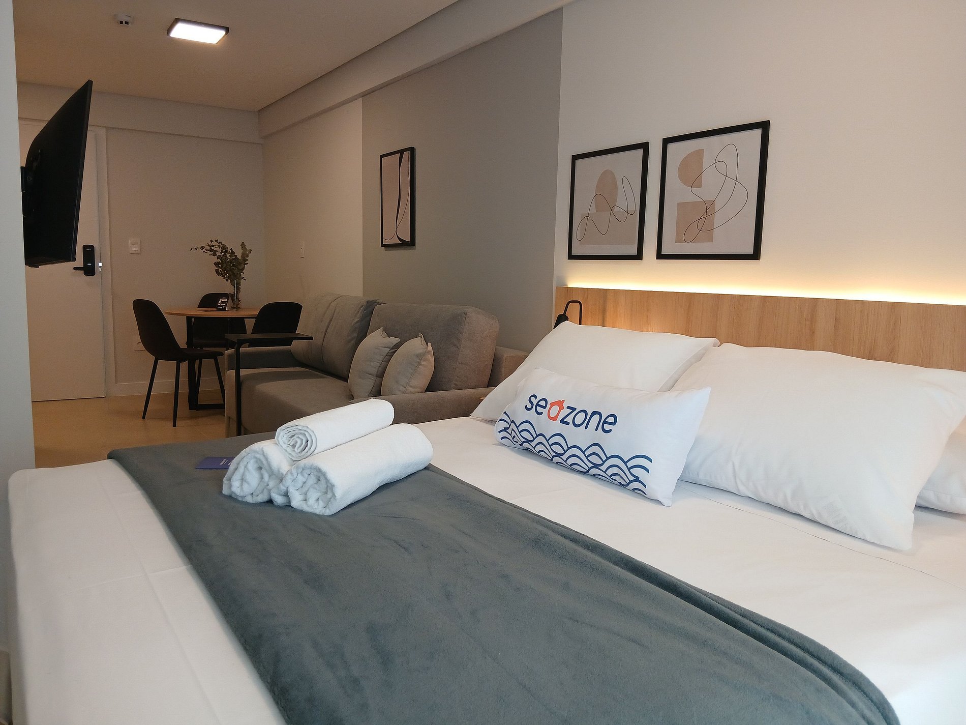 - Roupas de cama e banho de qualidade hoteleira (roupas de cama e toalhas extras são cobrados pela Seazone);