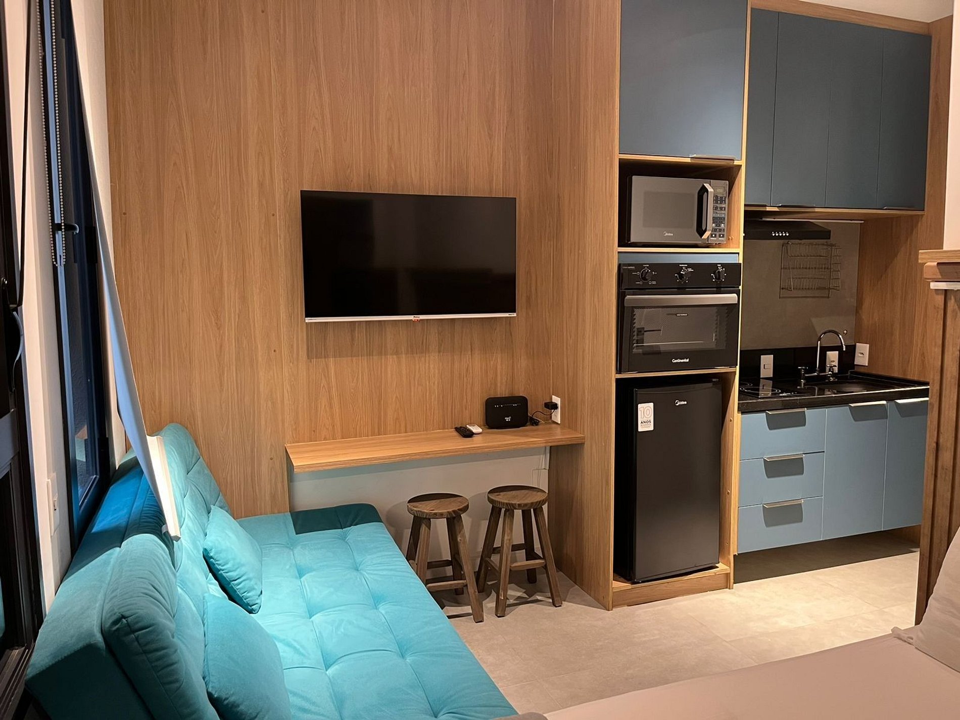 Este studio contemporâneo reúne cama de casal climatizada, cozinha completa com eletros modernos, ambiente integrado com sofá, Smart TV e bancada funcional. A estética clean e o mobiliário planejado elevam o conforto. Em região nobre com acesso rápido ao metrô, Congonhas, shoppings e ampla oferta gastronômica. Piscina e academia nas áreas comuns complementam a experiência com excelência.