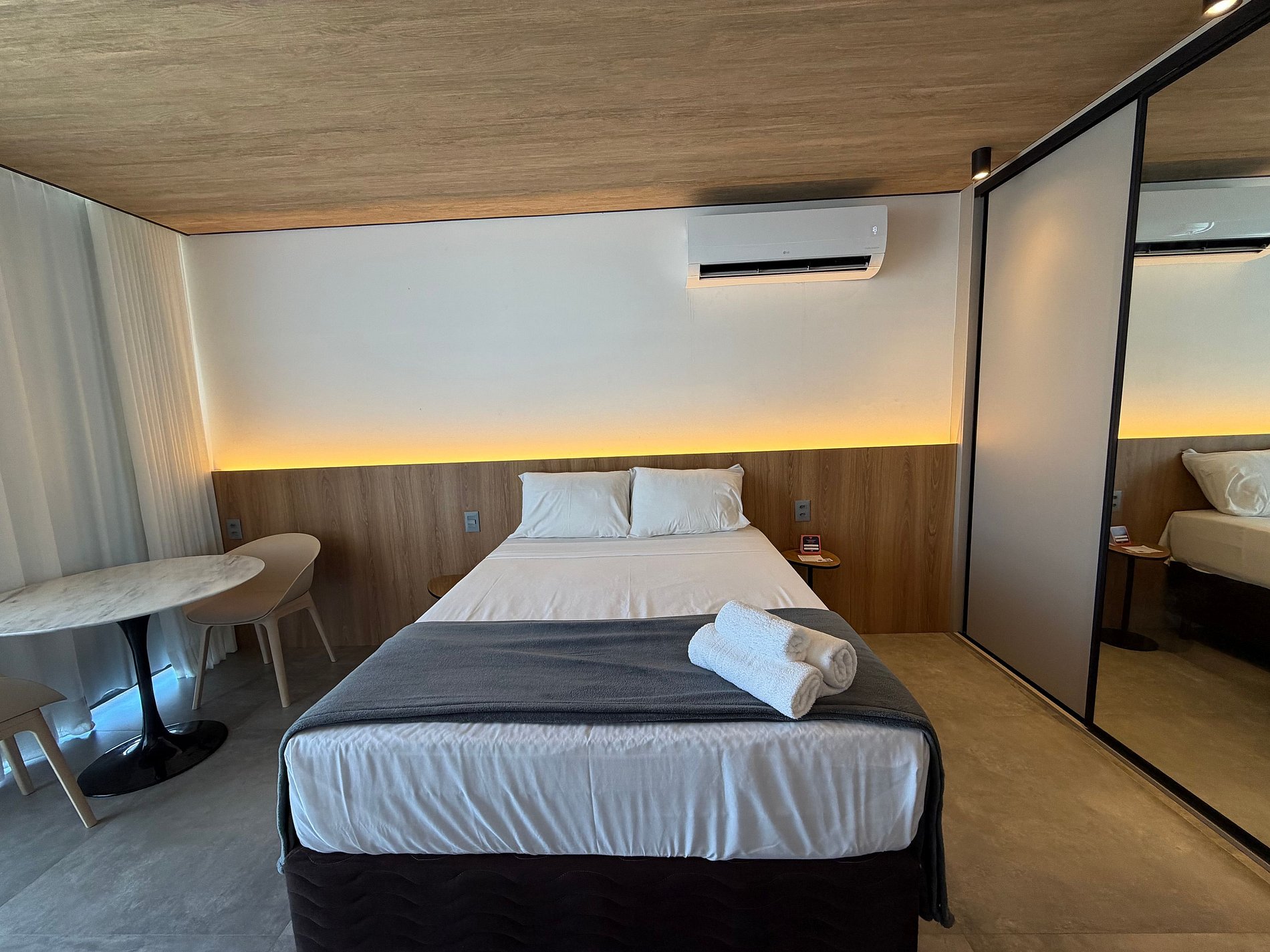 - 1 cama de casal, cortinas blackout, armário, Smart TV de tela plana e ar-condicionado;