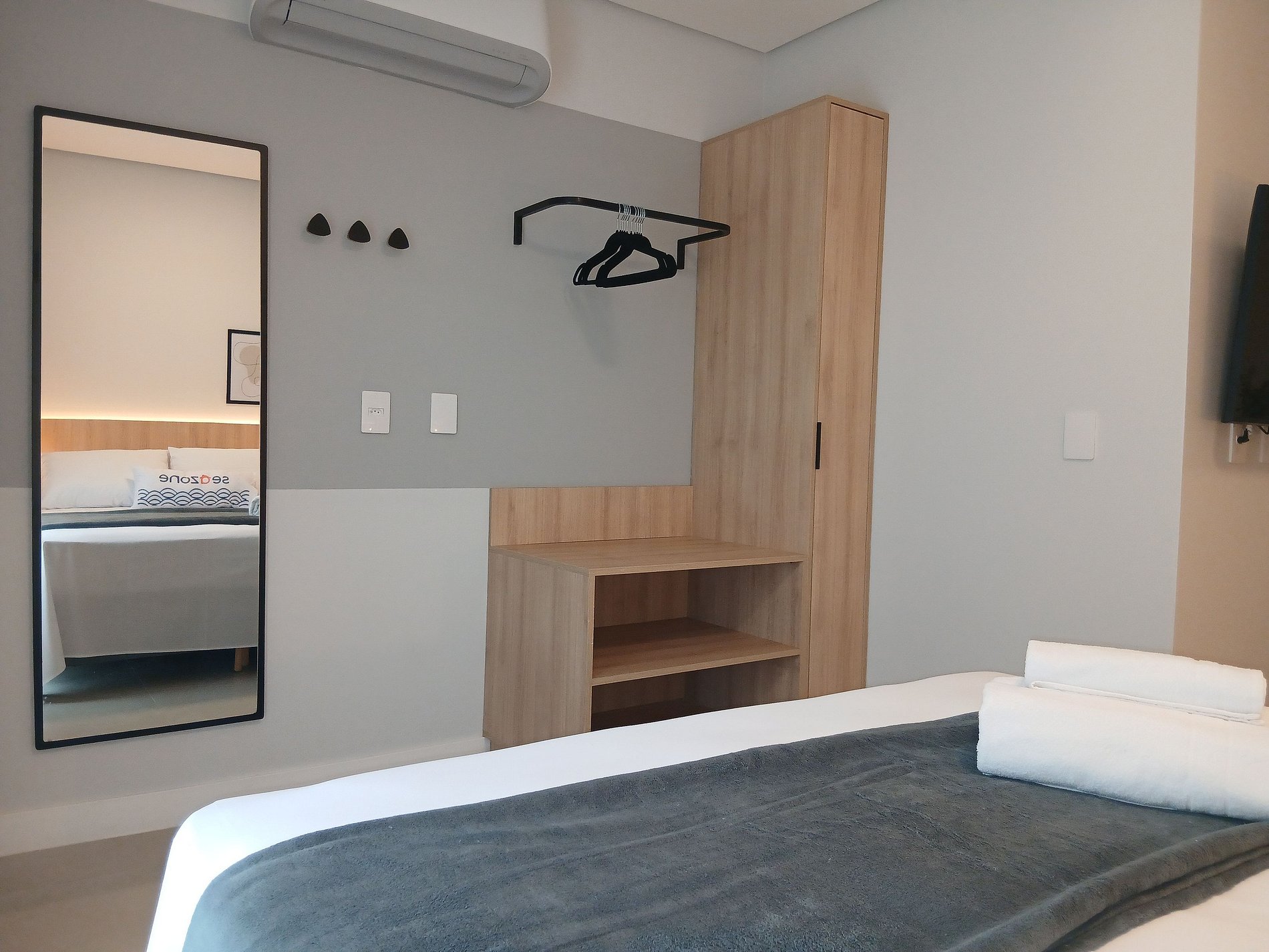 Com proposta contemporânea, este studio oferece conforto e praticidade em cada detalhe. Conta com cama confortável, sofá-cama, Smart TV, ar-condicionado e cozinha equipada. A sacada completa o ambiente. O prédio dispõe de piscina com borda infinita e espaço gourmet no rooftop, um diferencial da hospedagem. Fácil acesso à Lagoa de Ibiraquera, praias do Rosa e Surfland.
