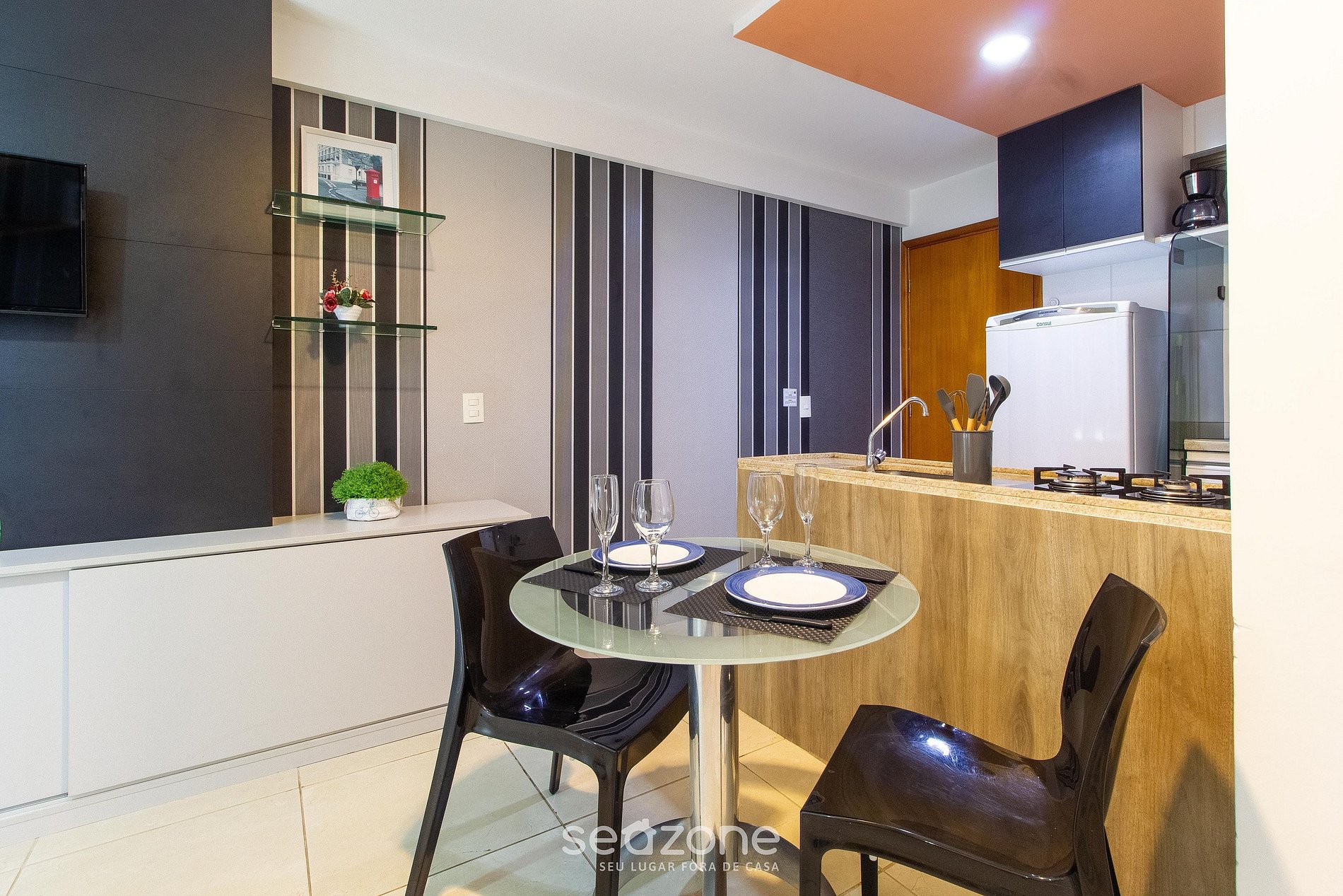 - Espaço para jantar com mesa e 2 cadeiras;