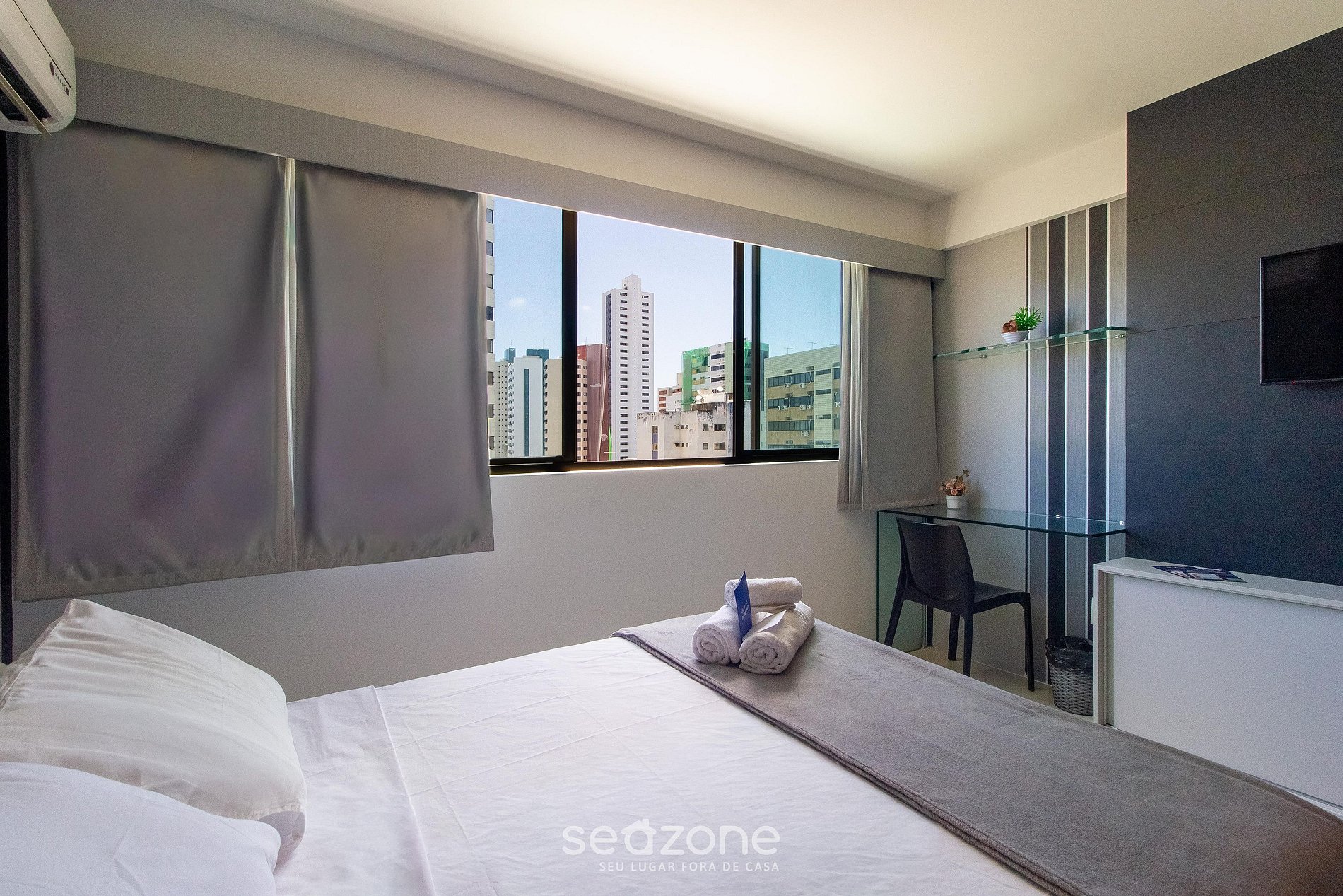 - Roupas de cama e banho de qualidade hoteleira (roupas de cama e toalhas extras são cobrados pela Seazone);