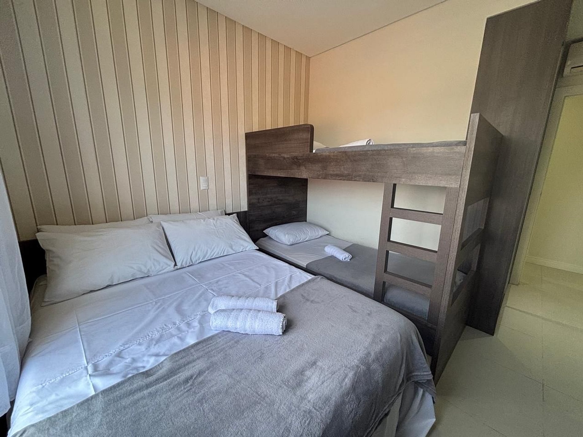 - 1 quarto com cama de casal, 1 beliche com 2 camas de solteiro, Smart Tv, armário e ar-condicionado;