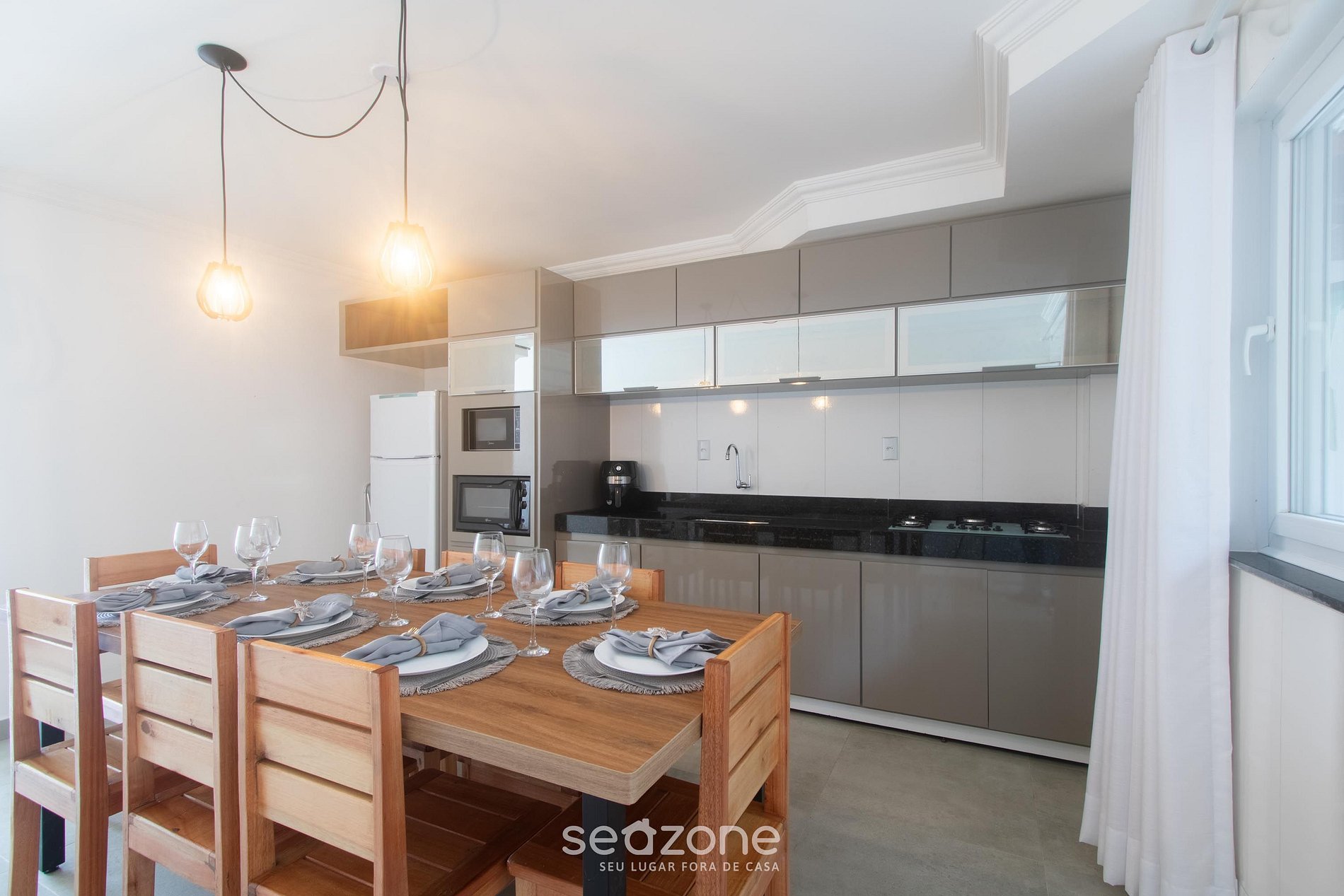 - Espaço para jantar com mesa e 8 cadeiras;
