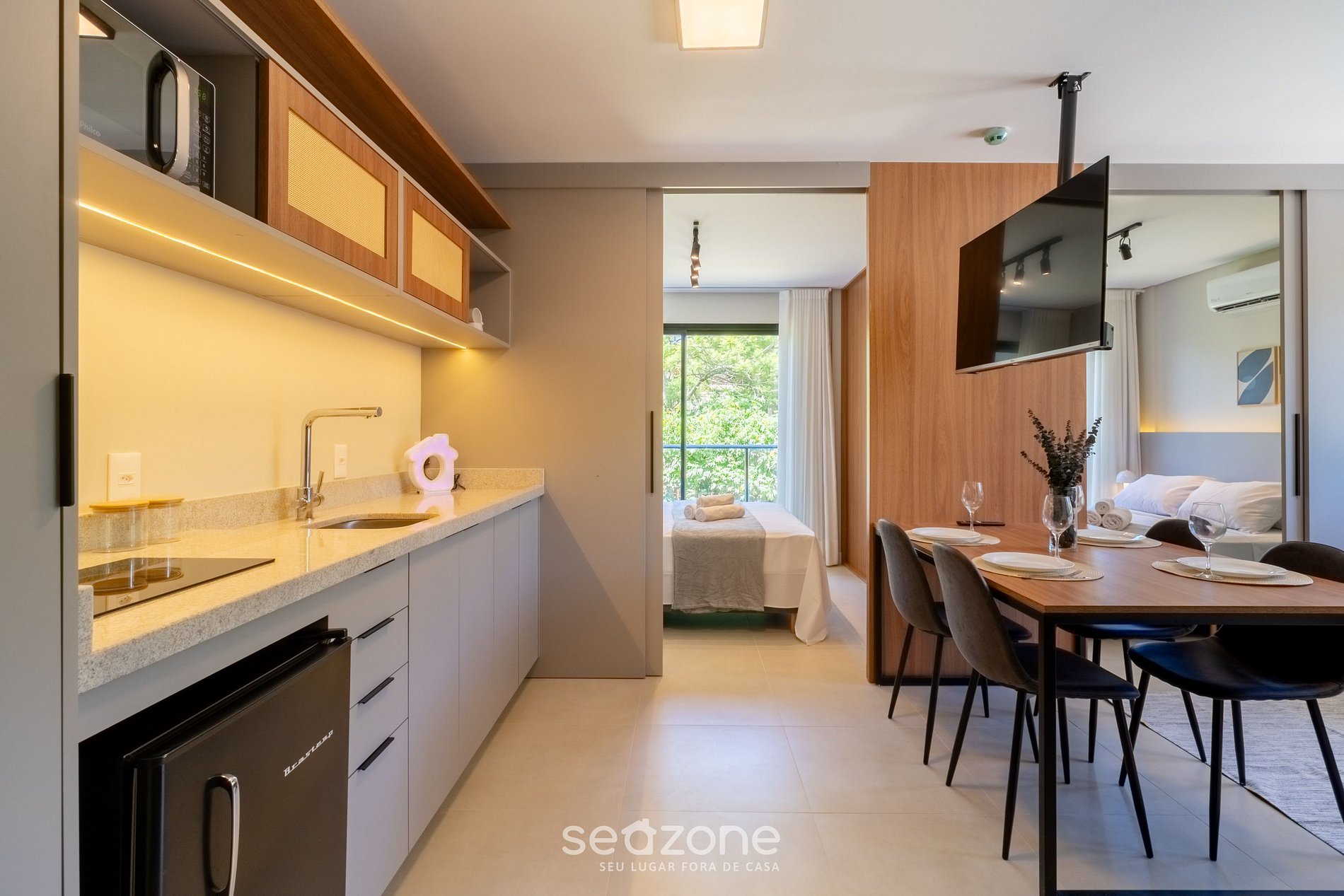 - Roupas de cama e banho de qualidade hoteleira (roupas de cama e toalhas extras são cobrados pela Seazone);