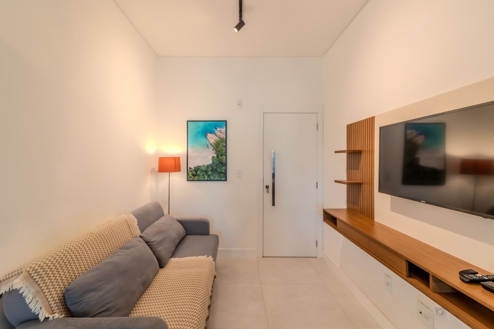 Hospede-se a apenas 550 metros da Praia de Perequê e sinta a brisa do mar de Porto Belo! Este apartamento combina localização estratégica com o conforto de uma cama Queen e ar-condicionado. Após a praia, relaxe na varanda com churrasqueira ou aproveite a Smart TV com Wi-Fi. O condomínio ainda oferece estacionamento para sua conveniência. Não perca tempo e reserve sua estadia hoje mesmo!