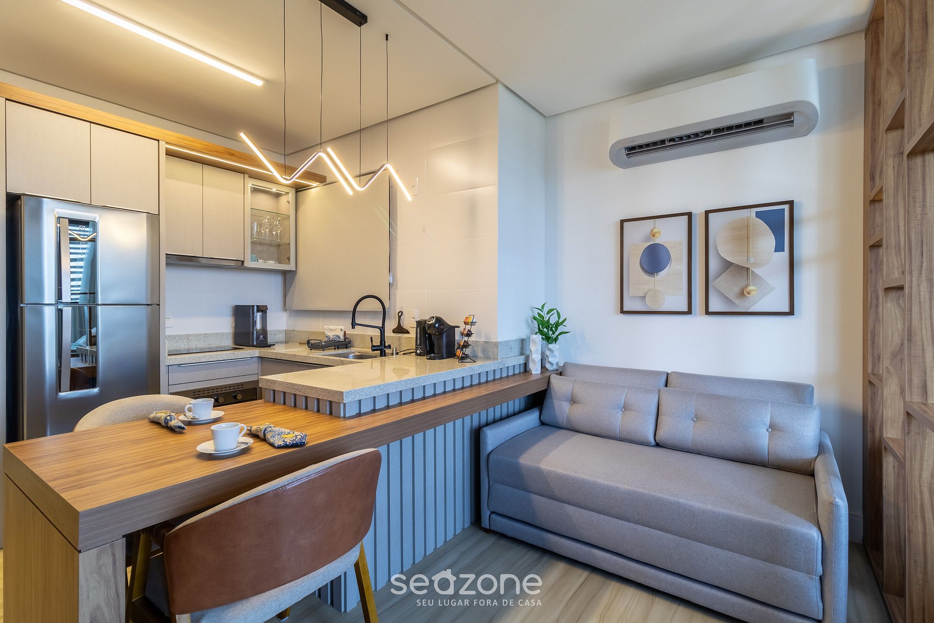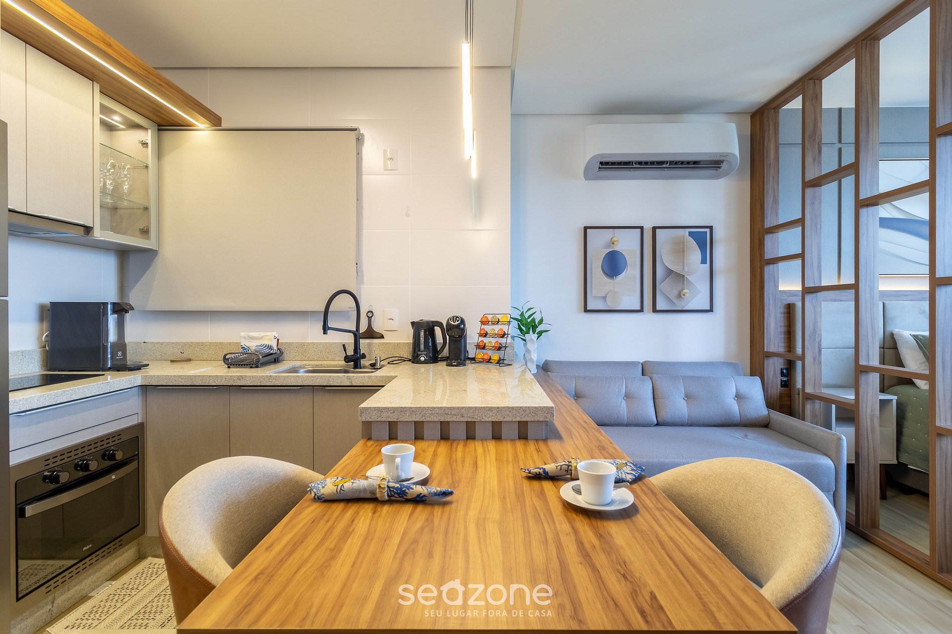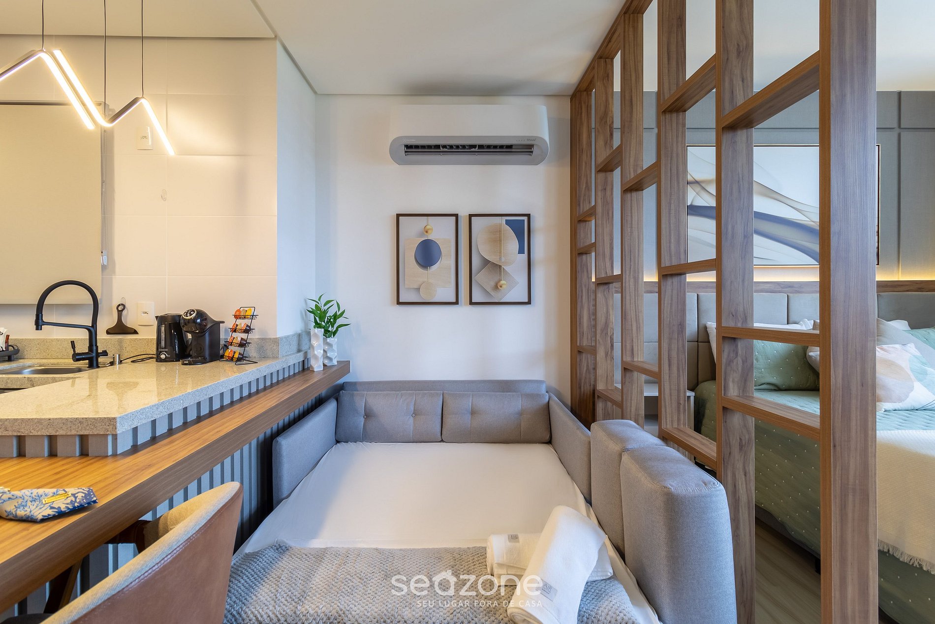 - Roupas de cama e banho de qualidade hoteleira (roupas de cama e toalhas extras são cobrados pela Seazone);