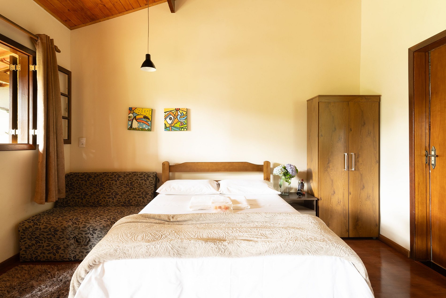 - 1 Cama de casal, 1 sofá-cama de solteiro e SmartTV com canais por assinatura;