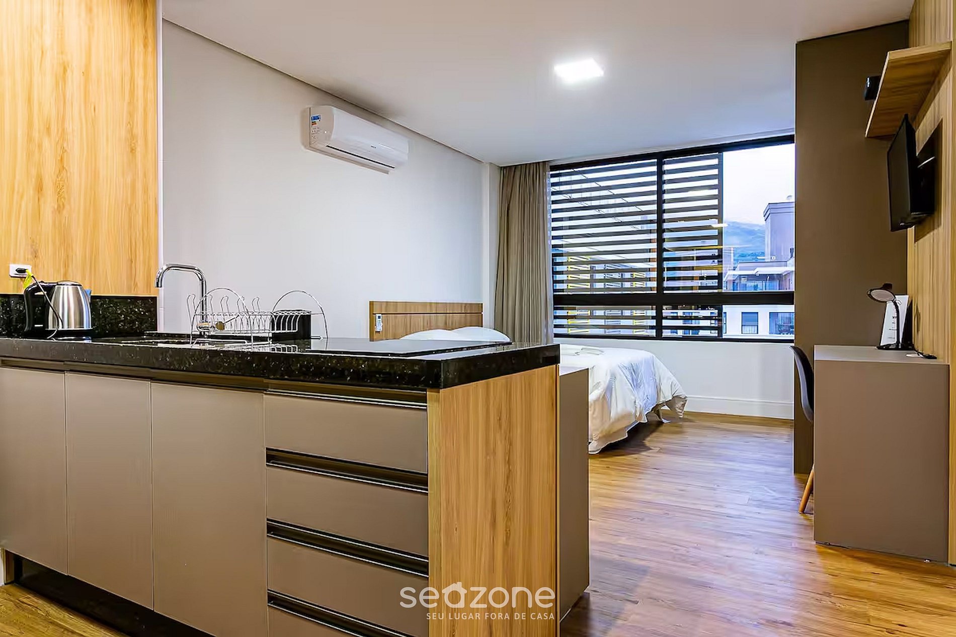 - Roupas de cama e banho de qualidade hoteleira (roupas de cama e toalhas extras são cobrados pela Seazone);