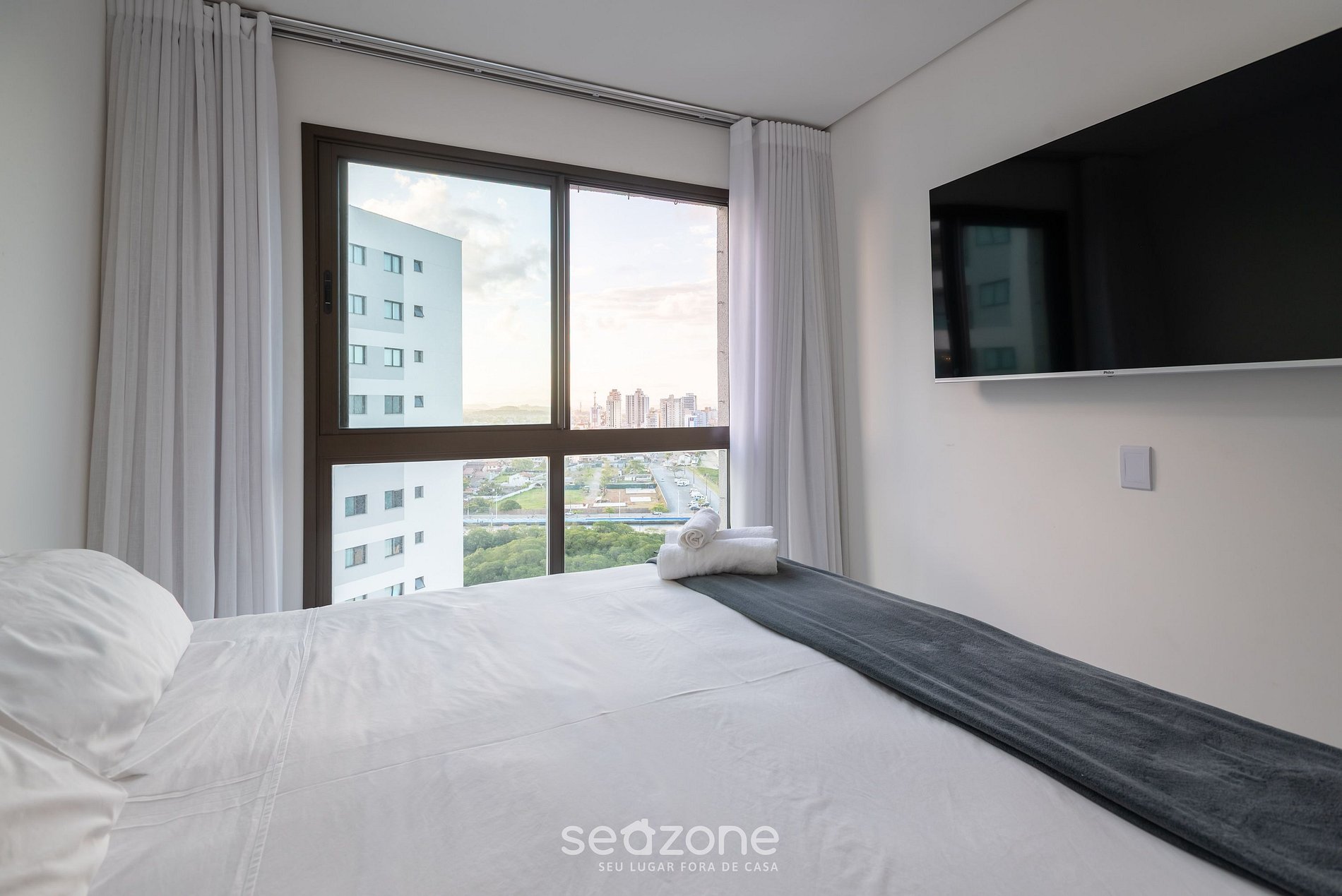 - Roupas de cama e banho de qualidade hoteleira (roupas de cama e toalhas extras são cobrados pela Seazone);