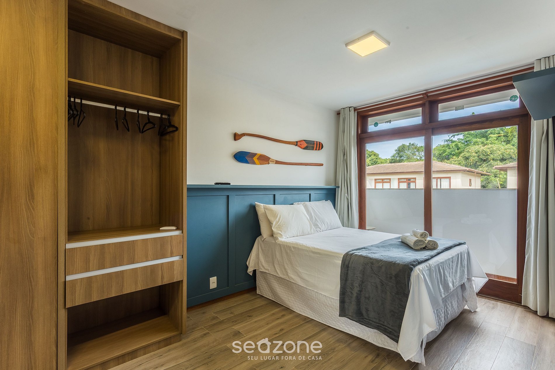 - Roupas de cama e banho de qualidade hoteleira (roupas de cama e toalhas extras são cobrados pela Seazone);