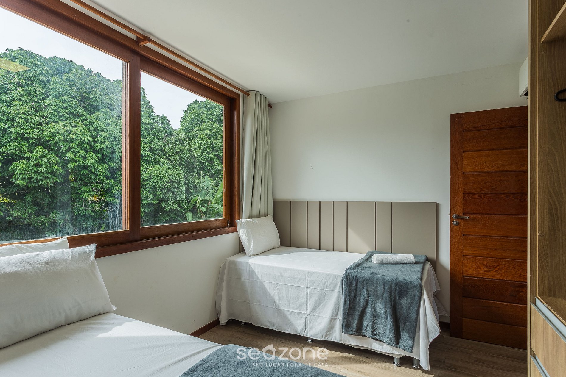 - Roupas de cama/banho e limpeza extras são solicitadas e pagas à parte, direto com a Seazone;