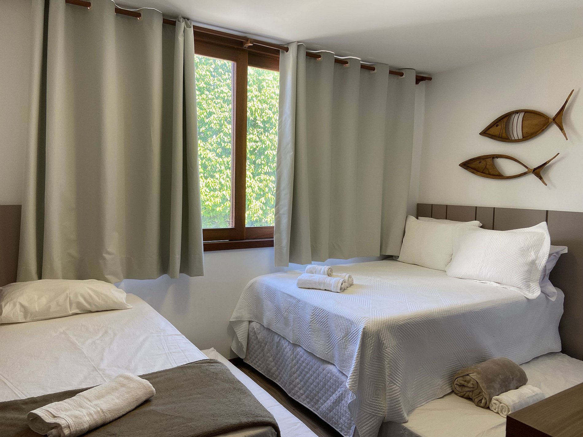 - 1 Quarto com cama de casal, cama de solteiro, 2 camas auxiliares de solteiro, armário e ar-condicionado;