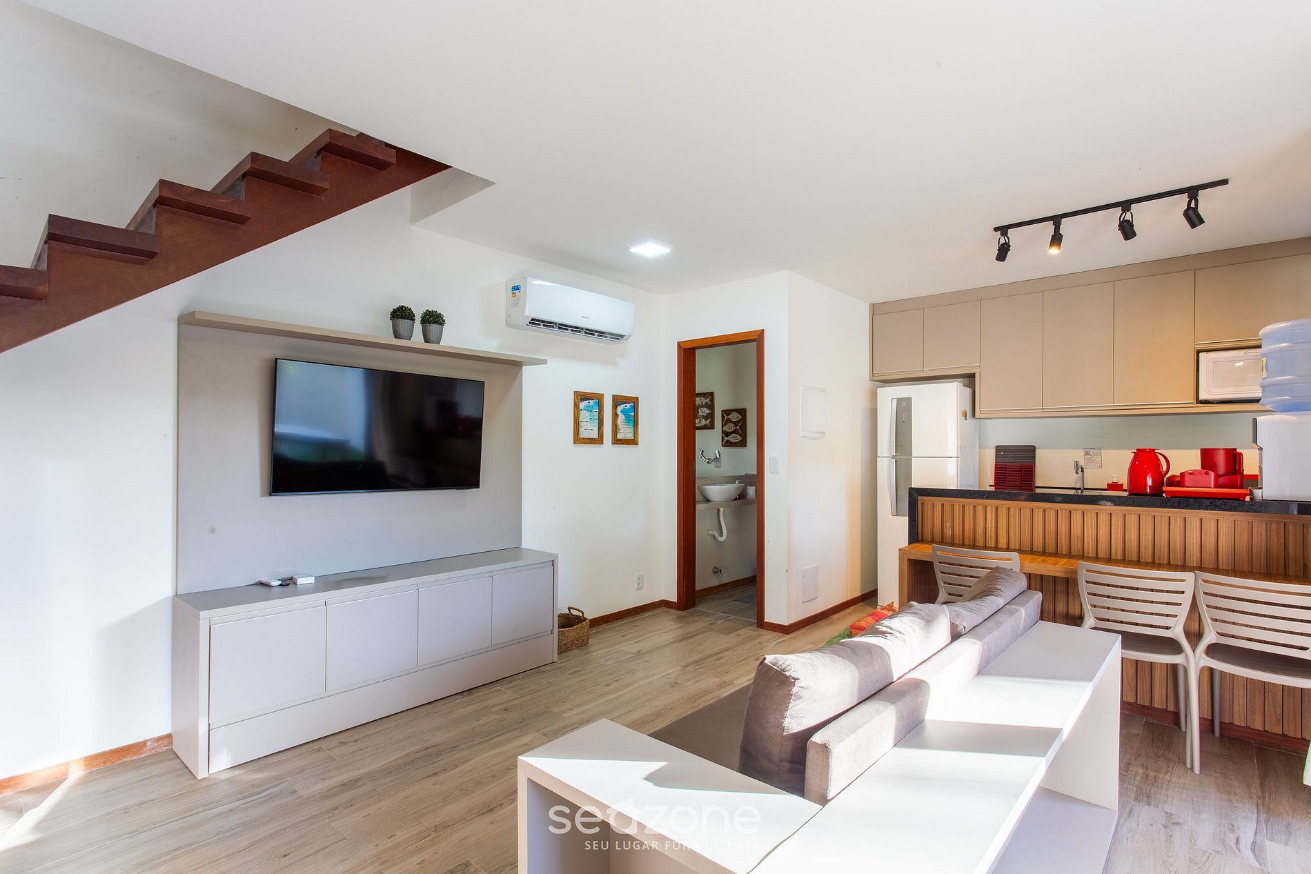 - Sala de estar com Sofá, ar-condicionado e Smart TV;